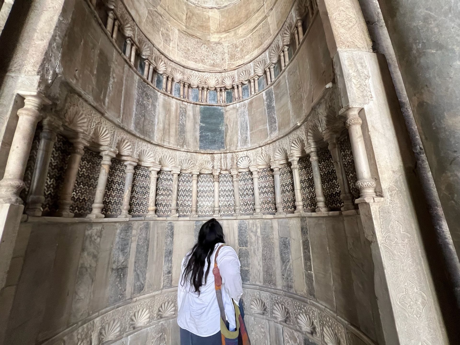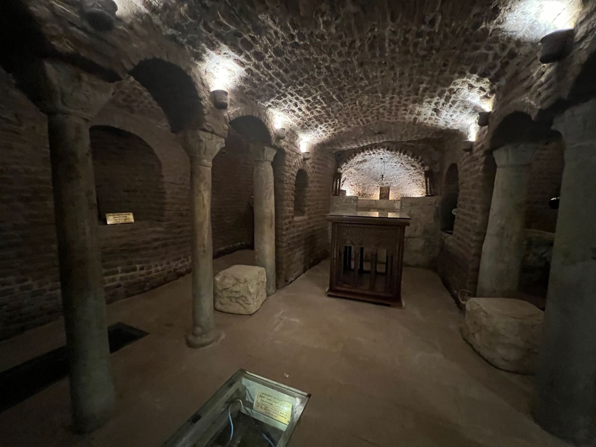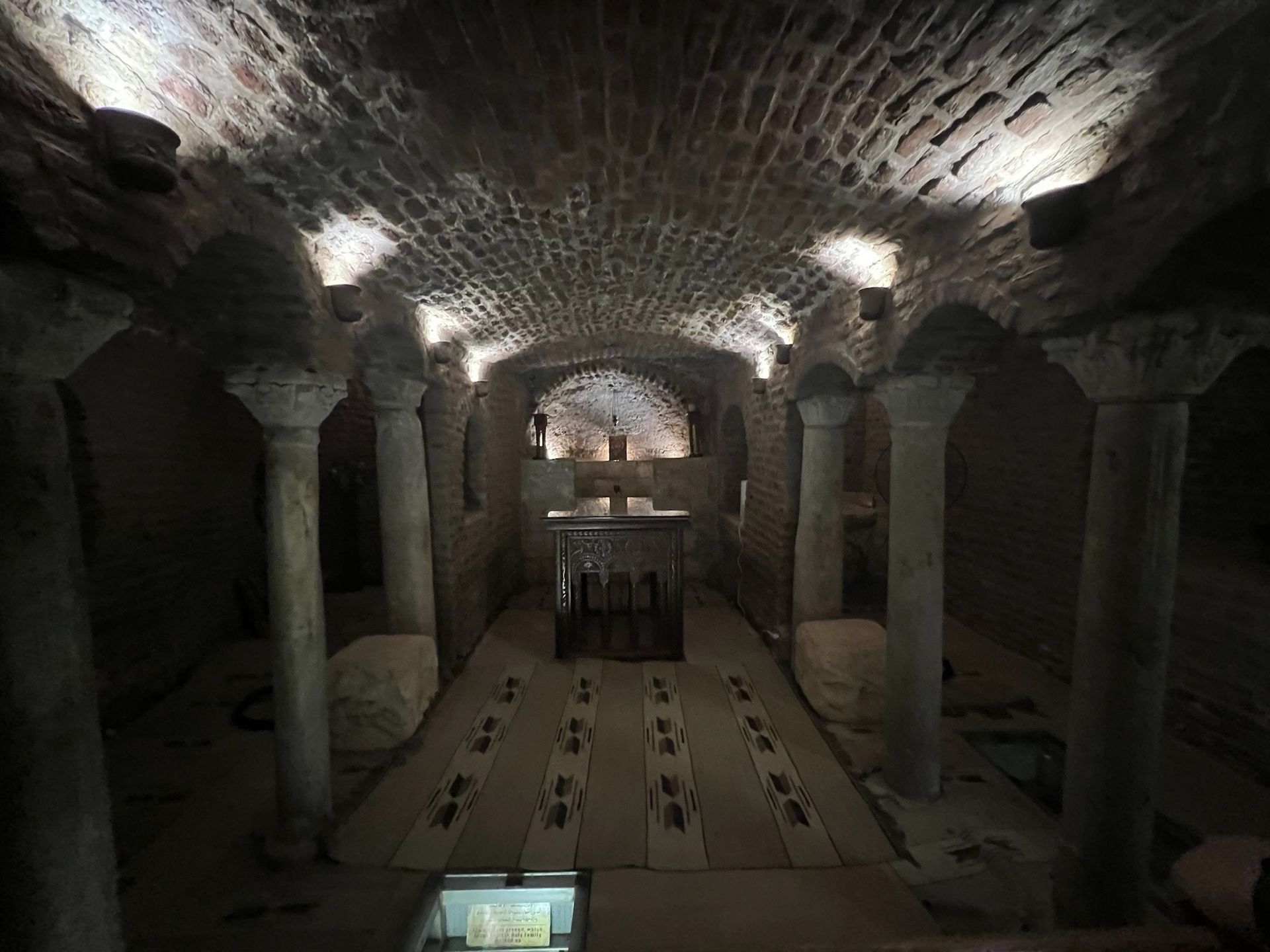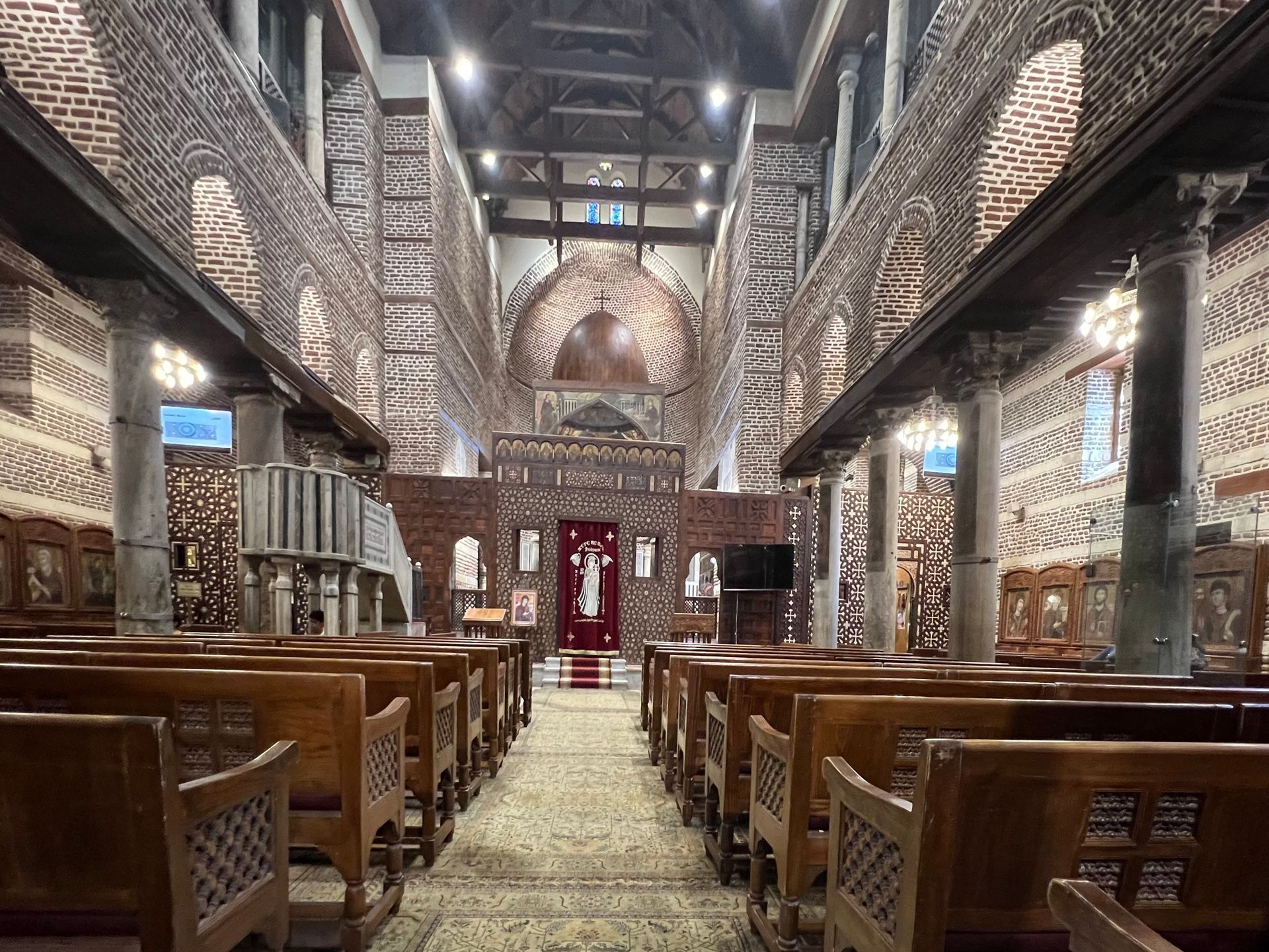 On another day, I was able to tour Coptic Cairo and some adjacent sights. Coptic Christians constitute most of Egypt’s Christian population. Their worship is similar to Greek Orthodox worship services, with some differences in church architecture and décor, church doctrine, and worship elements. While one can find Coptic churches throughout Cairo, the oldest of those churches are concentrated near one another in the Fustat neighborhood. My absolute favorite of those ancient Coptic churches is the one that is built on top of a crypt that houses the place where the Holy Family is said to have lived while they stayed in Egypt (Church of St. Sergius and Bacchus). Of course, the Greek Orthodox Church claims a different location of that site.