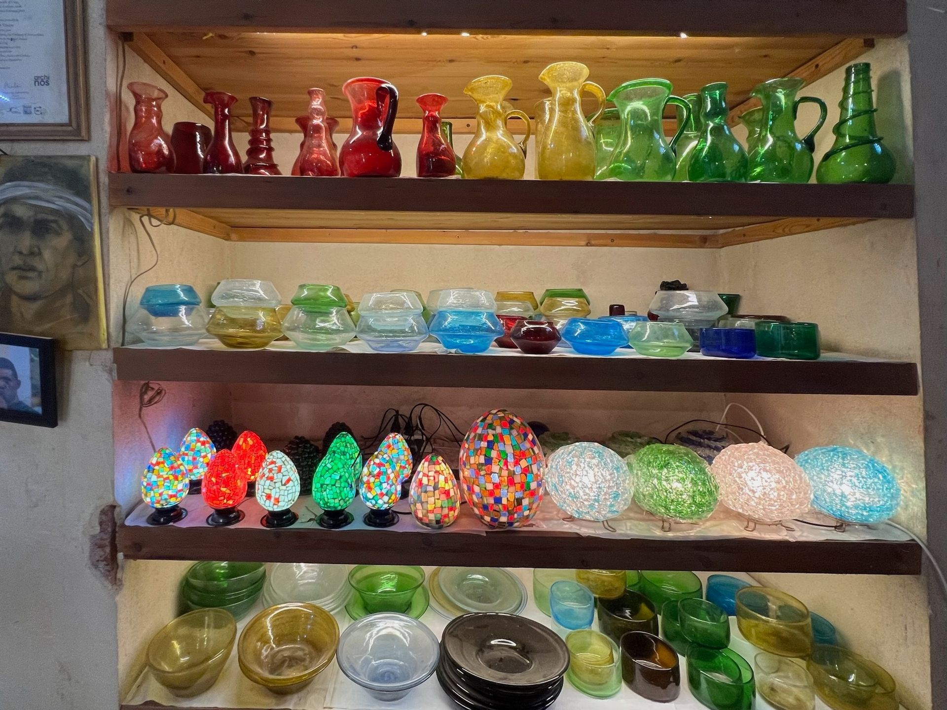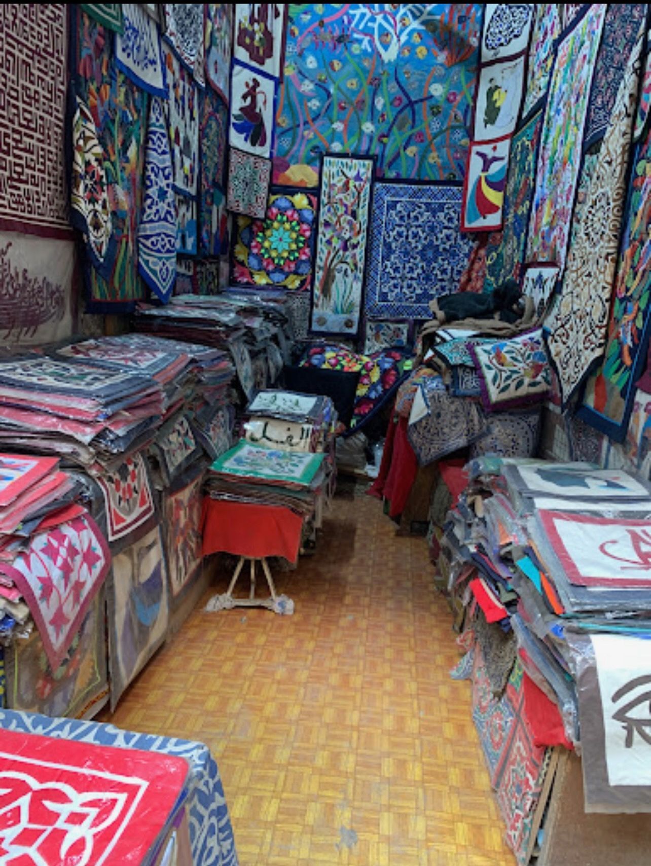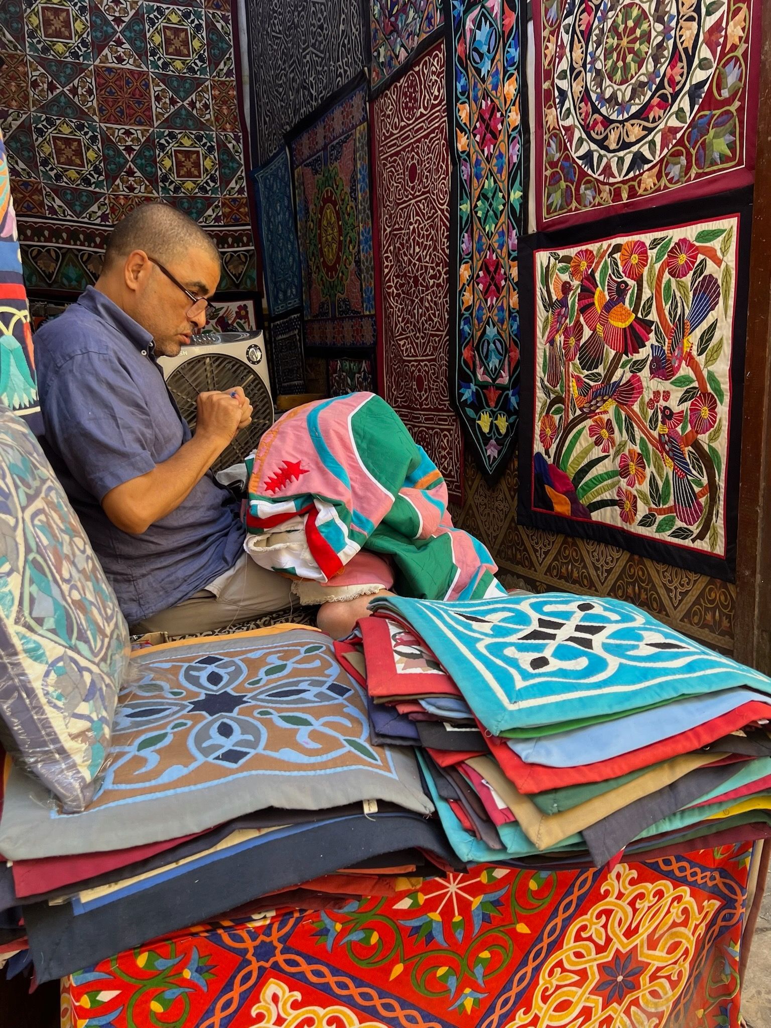 I got to visit a place called APE (Association for the Protection of the Environment), a NGO and children’s center that provides educational activities and income for families. Women learn to create patchwork fabrics, rugs, quilts, and stuffed toys sewn from unused scraps of fabric and cotton from Egypt’s garment factories. In addition, there’s paper making, jewelry design, and glass melting. A small store sells wonderful decorative and practical items.