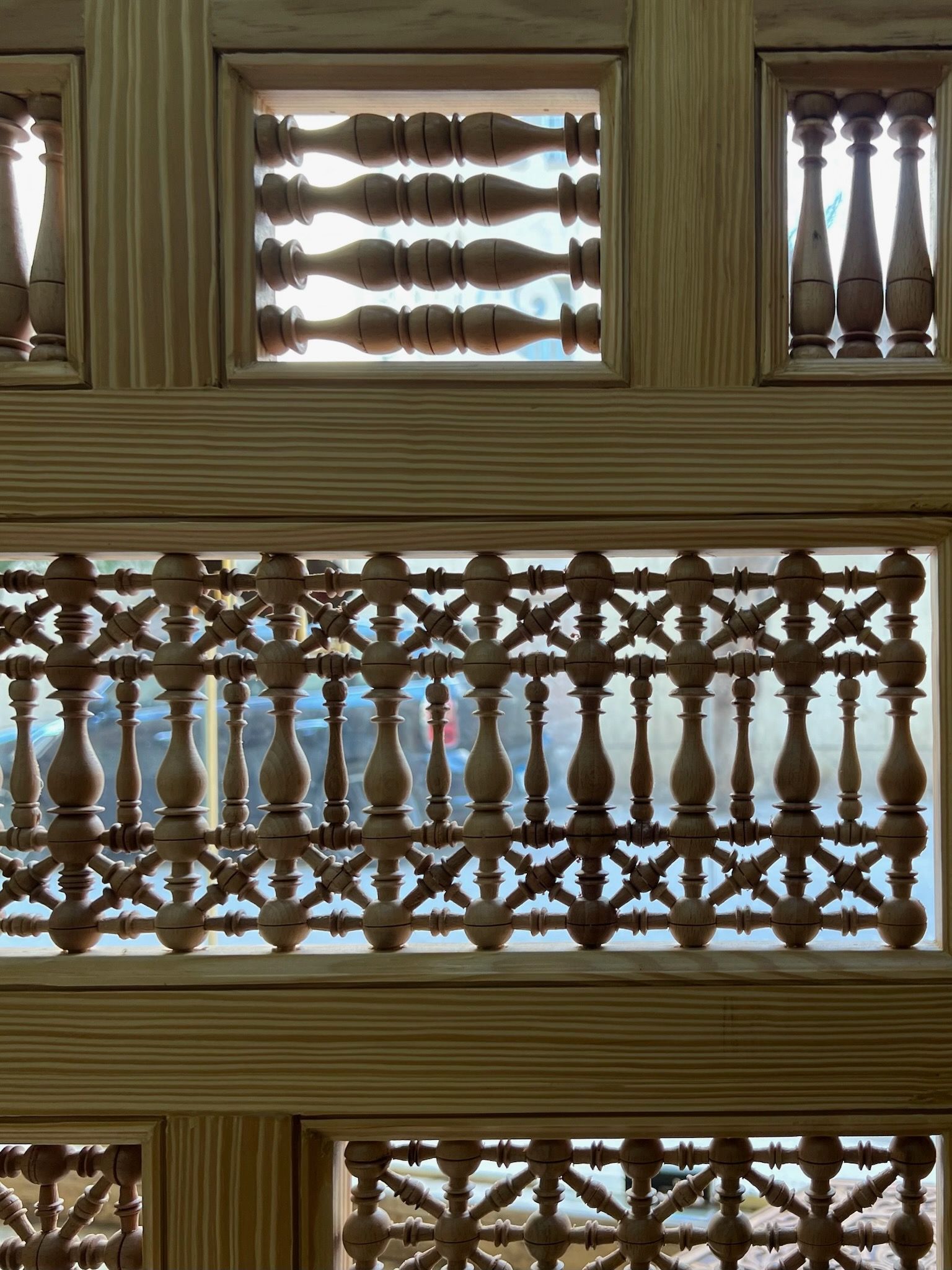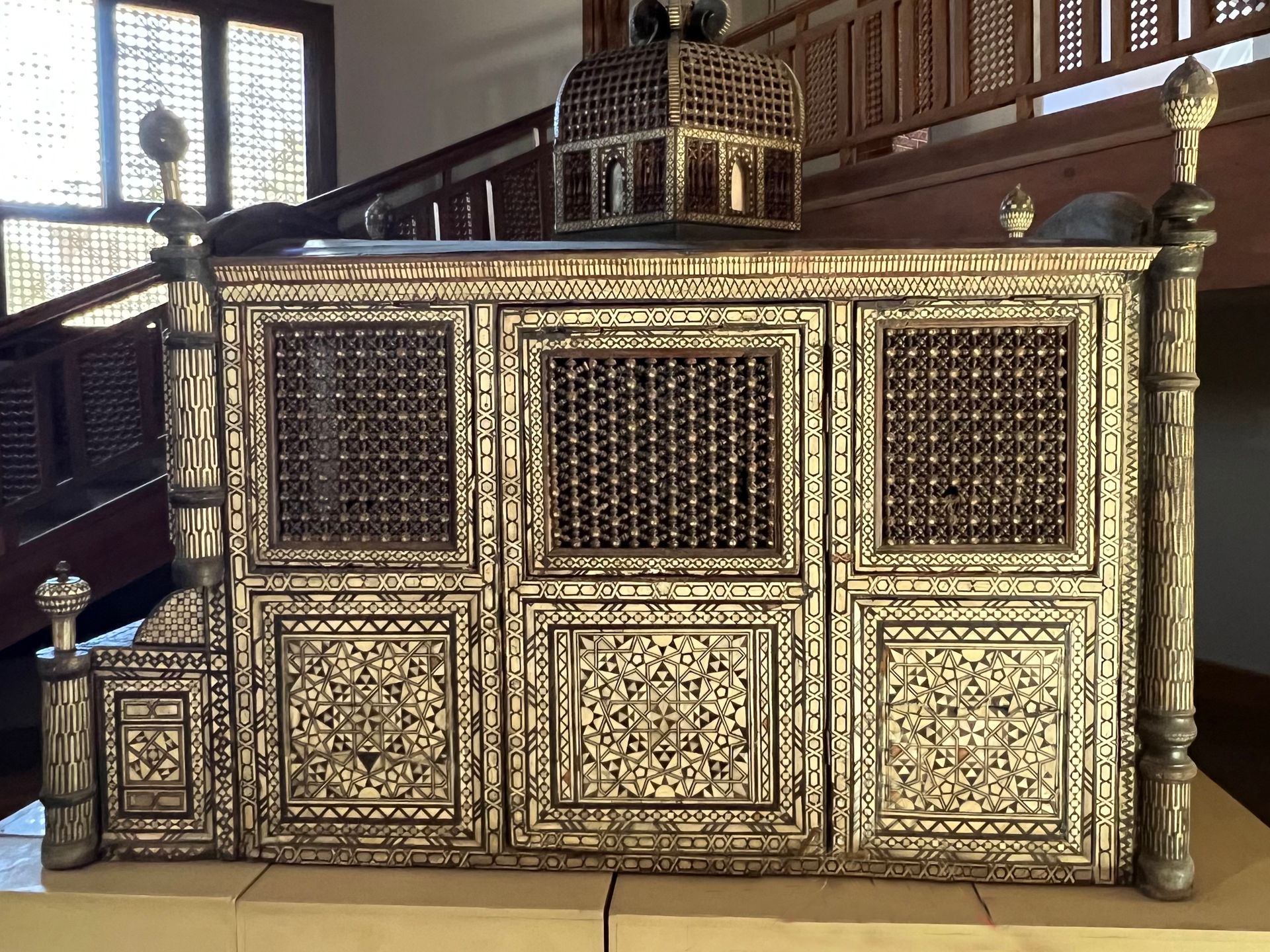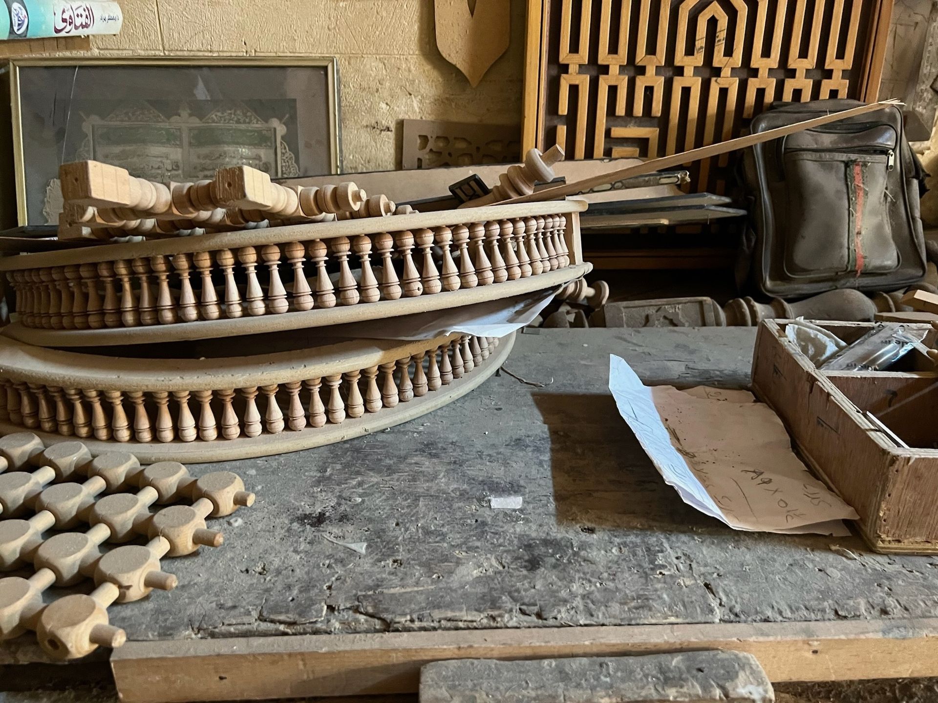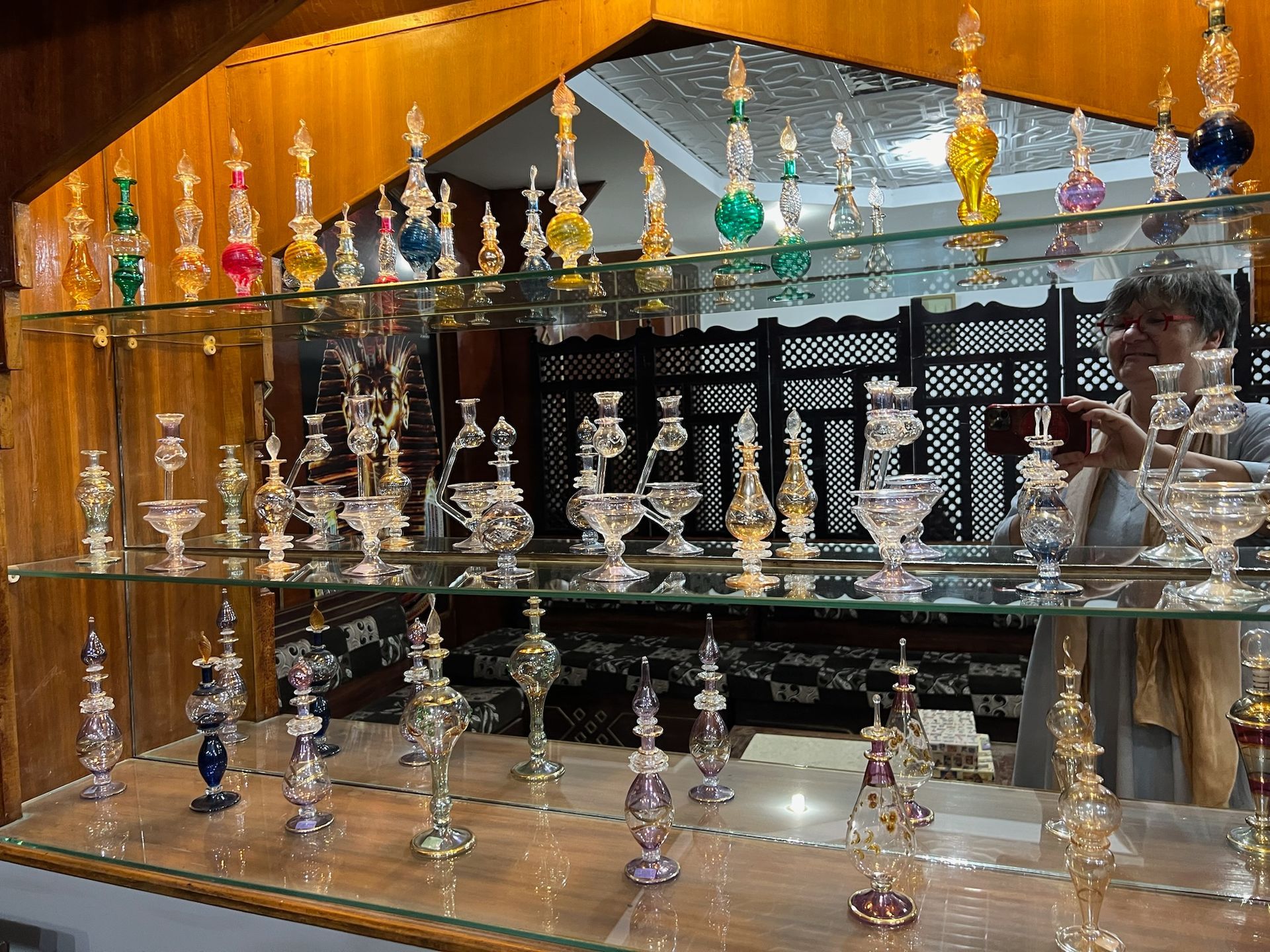Our last full day was spent with Ahmed Nady who, by then, had returned from guiding a group of 98 tourist all over Egypt. Not only did Ahmed take us to APE, but also to the Islamic cemeteries (which also house shrines, mausoleums, and businesses). Among visitors, the cemeteries are particularly known for their glassblowers. Thankfully, the items we bought all arrived home intact. My final request was to visit a mashrabiya manufacturer. Apparently, there is only one business remaining that practices the age-old technique of wood-turning and assembling large numbers of precisely-make small pieces of wood into room dividers and furniture elements. Ahmed now hopes to build a relationship with the owner, commission small pieces, and take future visitors to the shop for the experience.