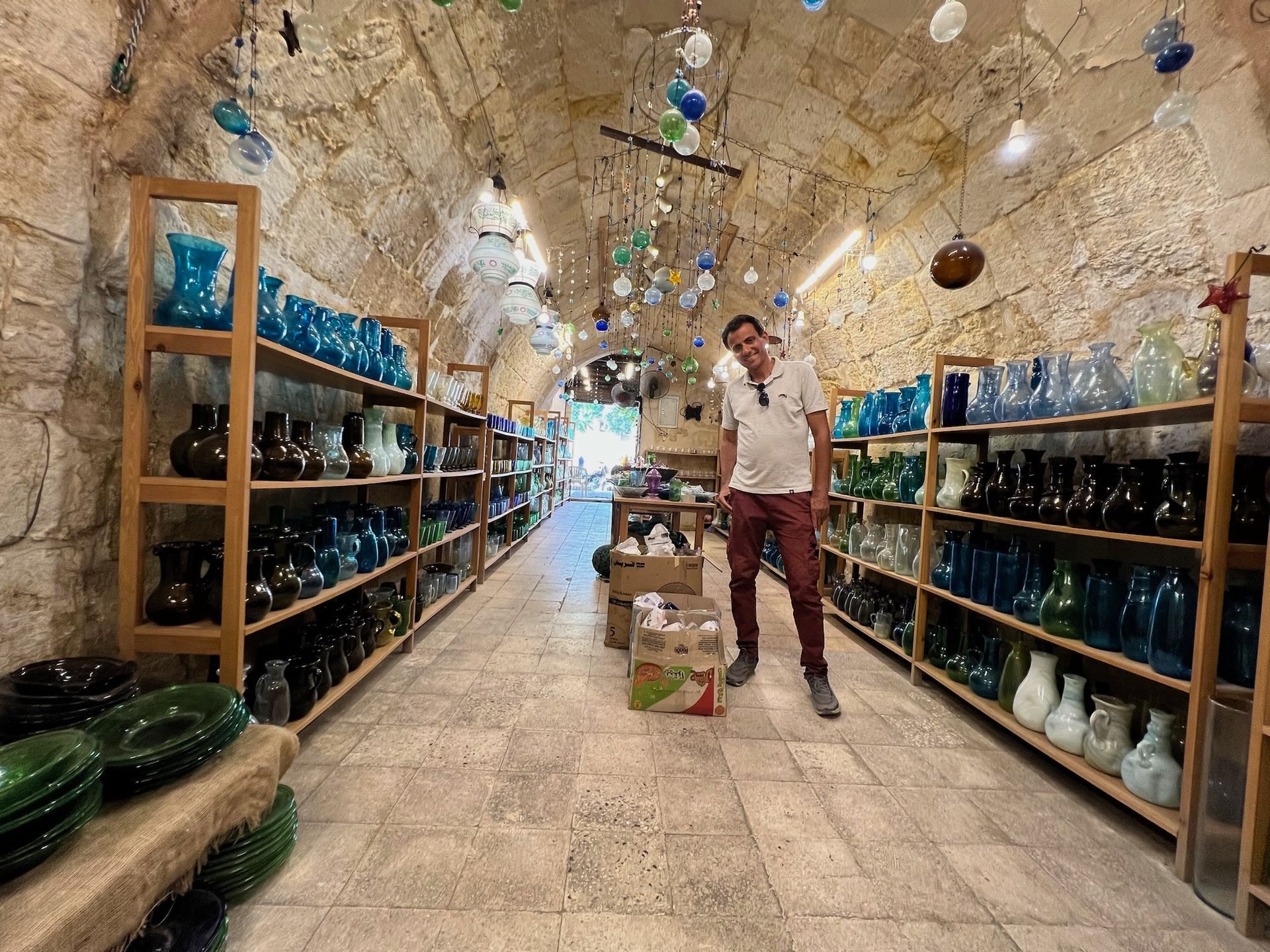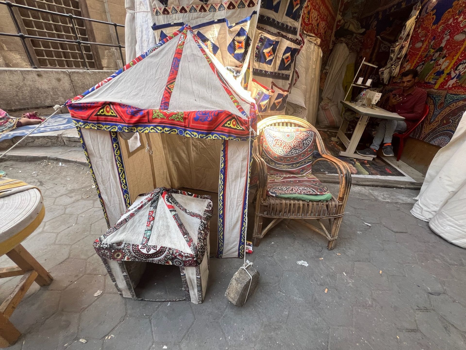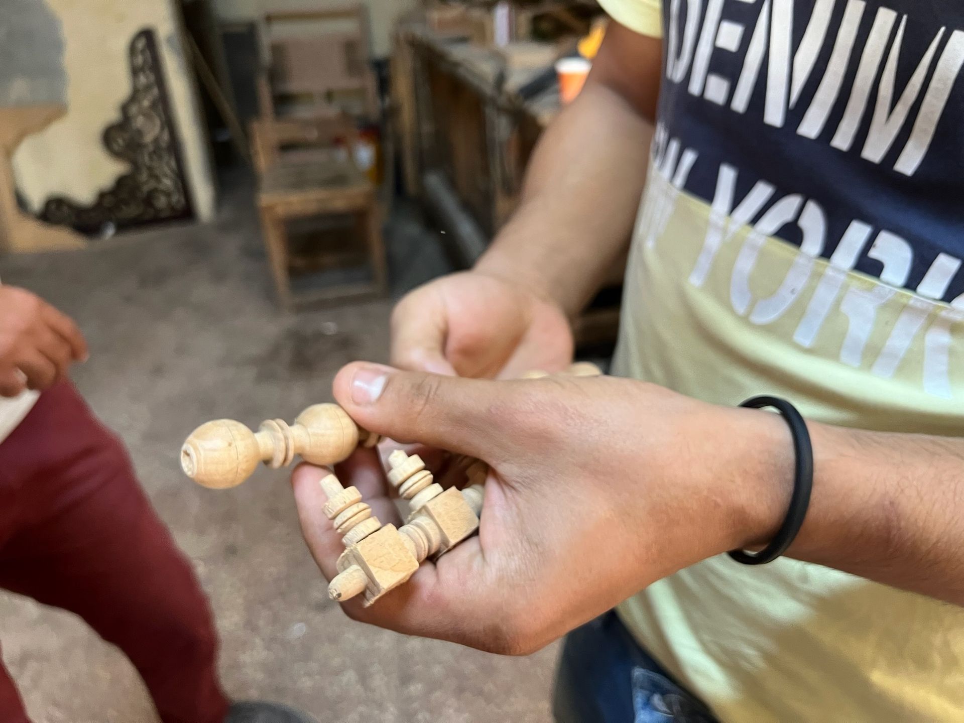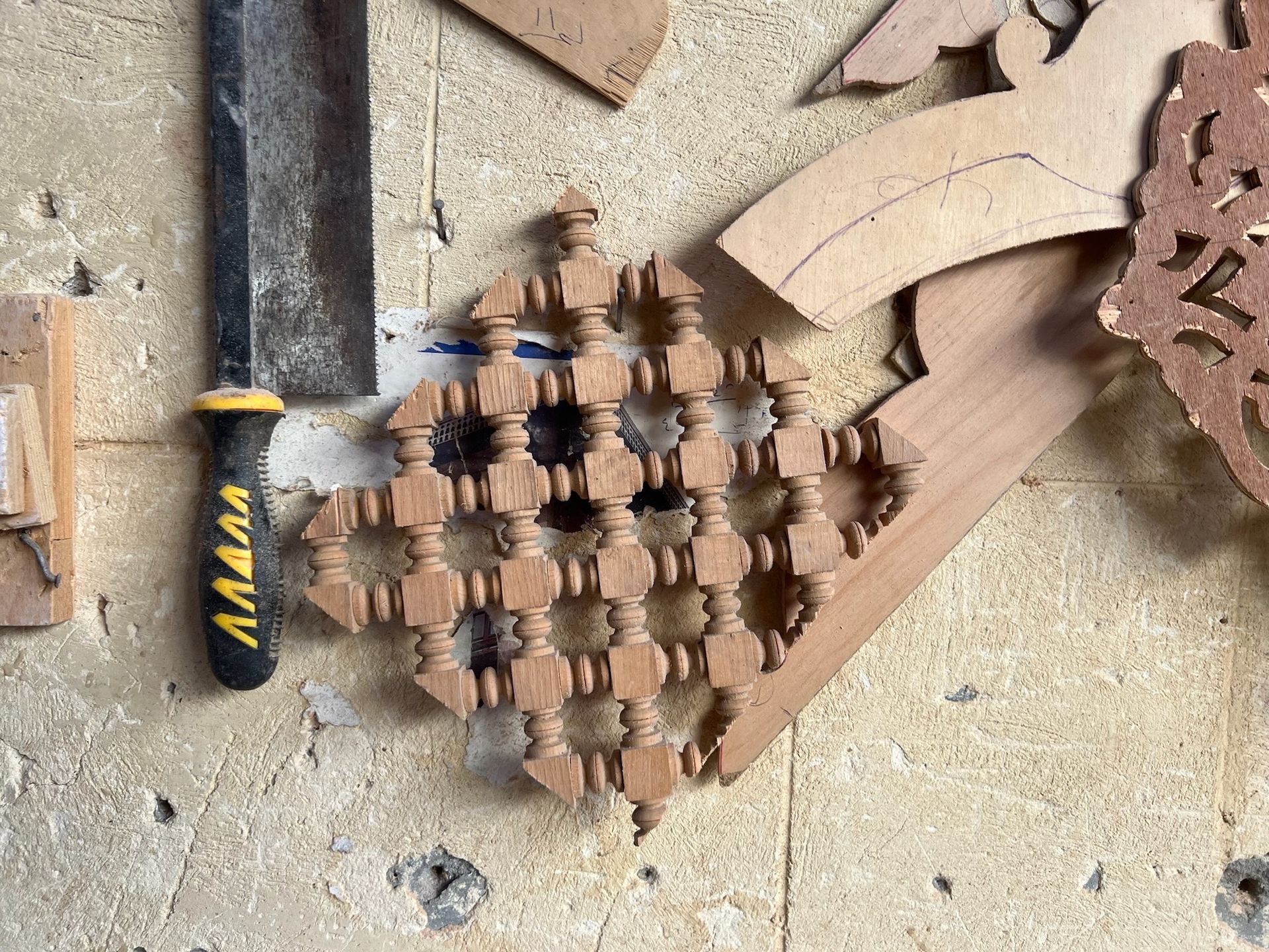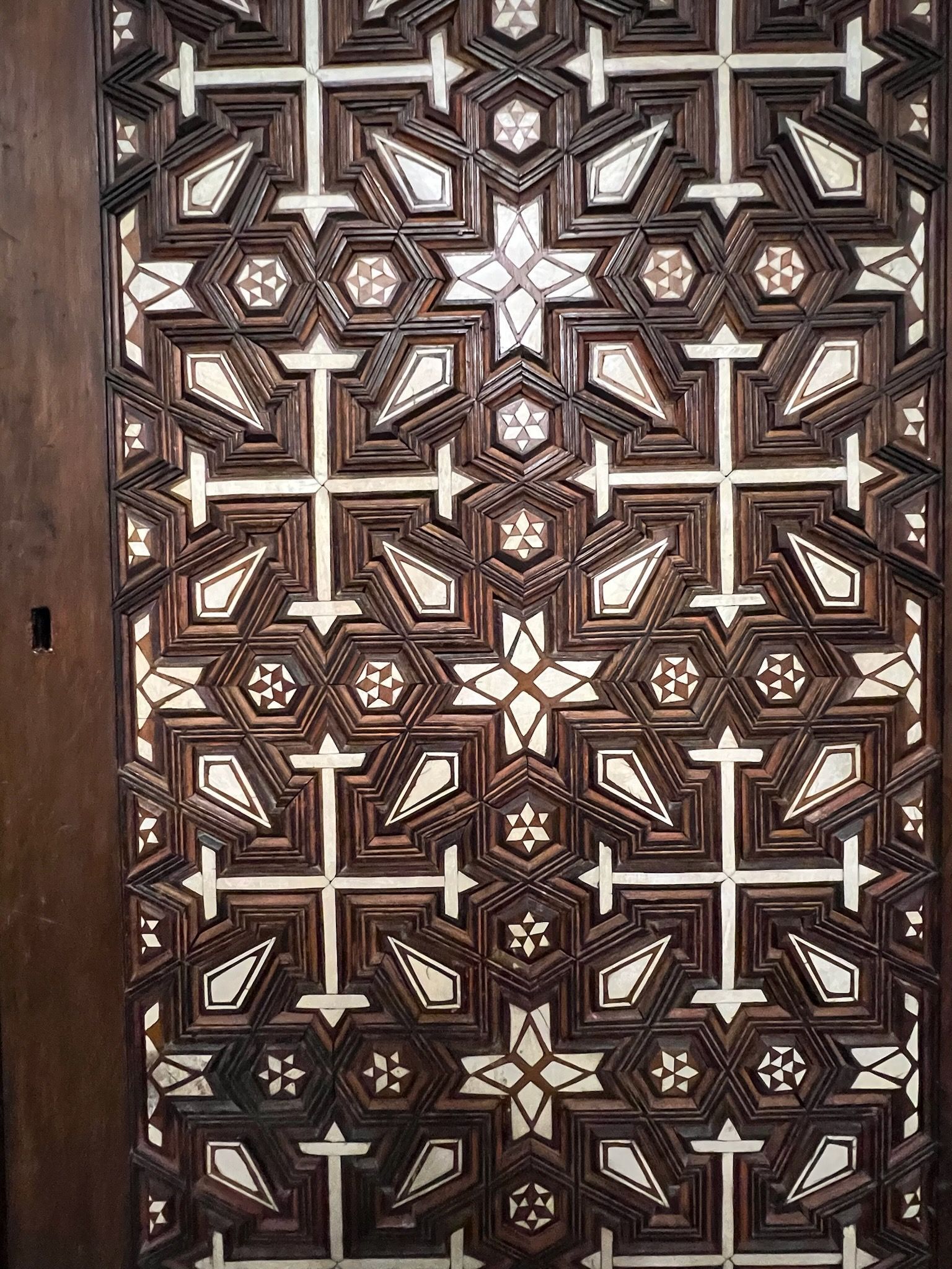 Our last full day was spent with Ahmed Nady who, by then, had returned from guiding a group of 98 tourist all over Egypt. Not only did Ahmed take us to APE, but also to the Islamic cemeteries (which also house shrines, mausoleums, and businesses). Among visitors, the cemeteries are particularly known for their glassblowers. Thankfully, the items we bought all arrived home intact. My final request was to visit a mashrabiya manufacturer. Apparently, there is only one business remaining that practices the age-old technique of wood-turning and assembling large numbers of precisely-make small pieces of wood into room dividers and furniture elements. Ahmed now hopes to build a relationship with the owner, commission small pieces, and take future visitors to the shop for the experience.