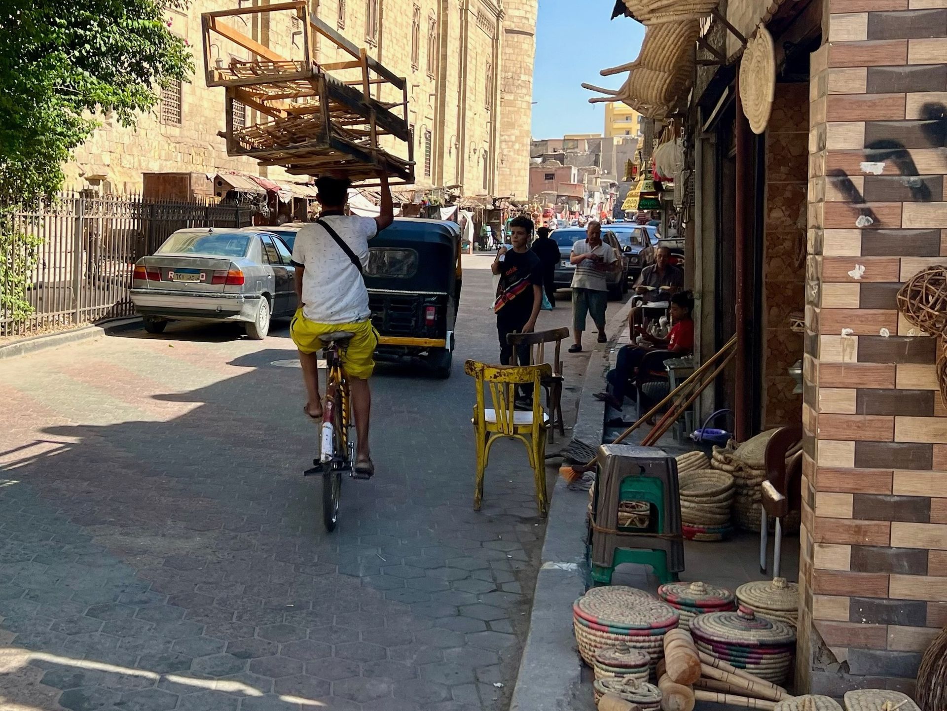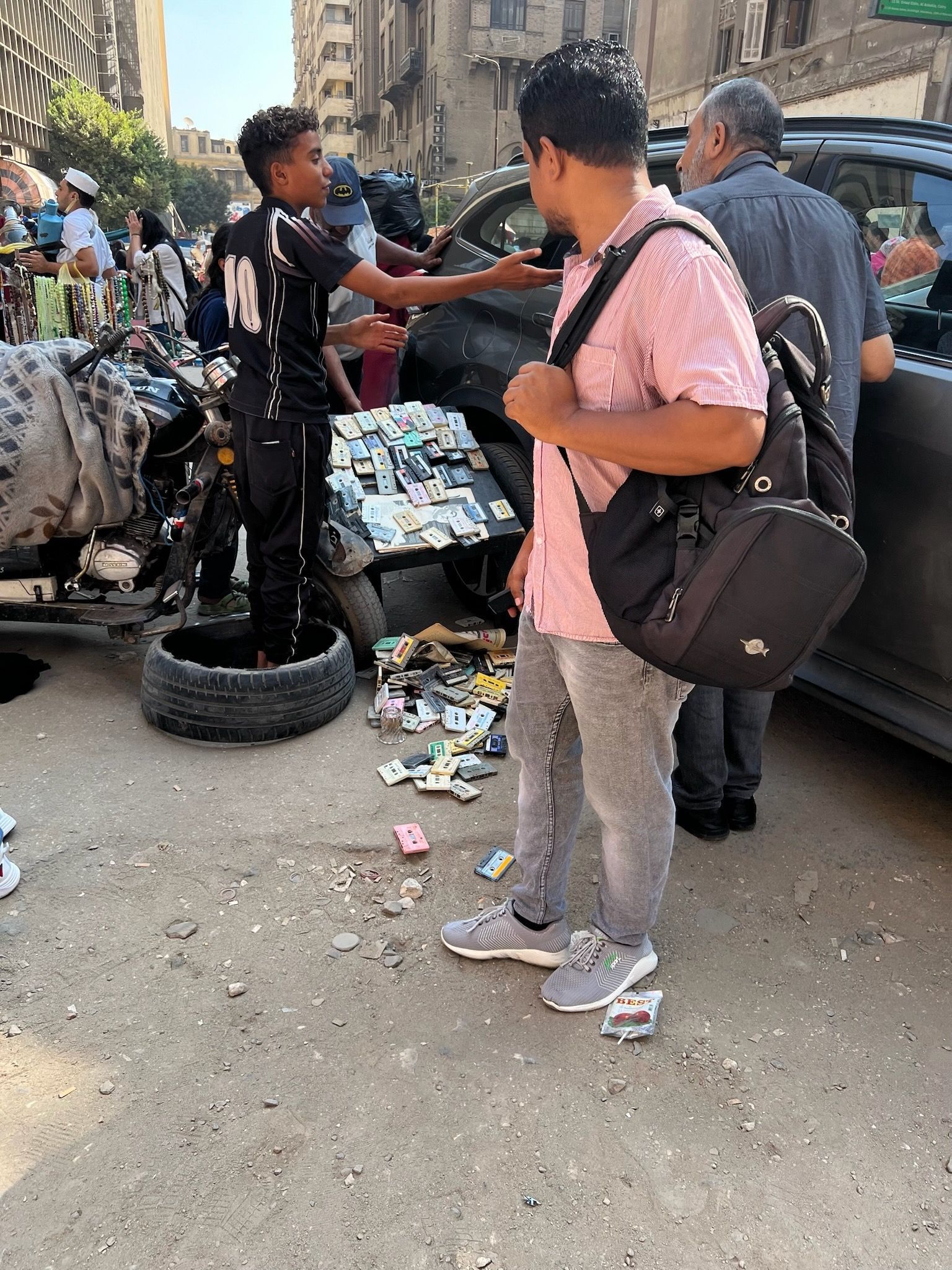 By now, my whole first week in Cairo is over. I feel that I have have learned a few things, but that, at times, I continue to feel a bit like a fish out of water, or like child learning to do tasks that adults easily take for granted -… tasks like crossing busy streets in-between the moving cars, using the subway, using Uber, buying groceries, cooking on the propane stove, turning on ceiling fans and a window AC unit, buying an eSim for my cell phone. My currently favorite concept is “baby steps.” I am learning to celebrate the many small accomplishments each day – that I found a nearby grocery store without getting lost, that I was able to buy essential items for the fridge and pantry, that I was able to get to the StARS (St. Andrew’s Refugee Services) office via Uber … and back. I have now made myself Turkish coffee, cooked rice, organized my belongings and the stuff that I brought for others. I am also the proud owner of a prepaid Cairo Metro card, know how to use it, and walked to the nearest Metro station. I have watched the sun set over Cairo (while sipping a Turkish coffee) and enjoyed the sight of kites flying from rooftops and swarms of pigeons being released into the cooler evening air and goaded back home by their owner waving a flag.