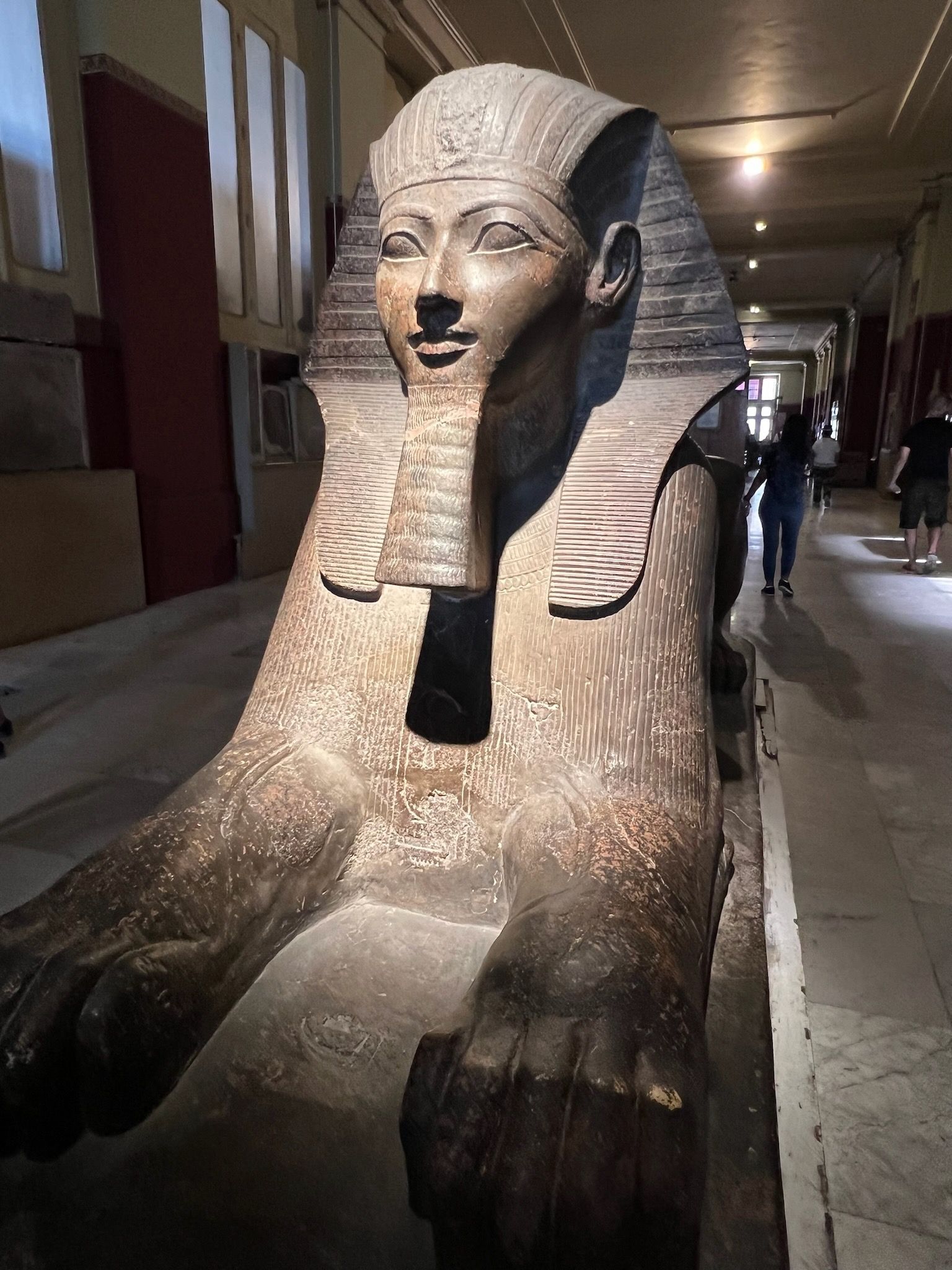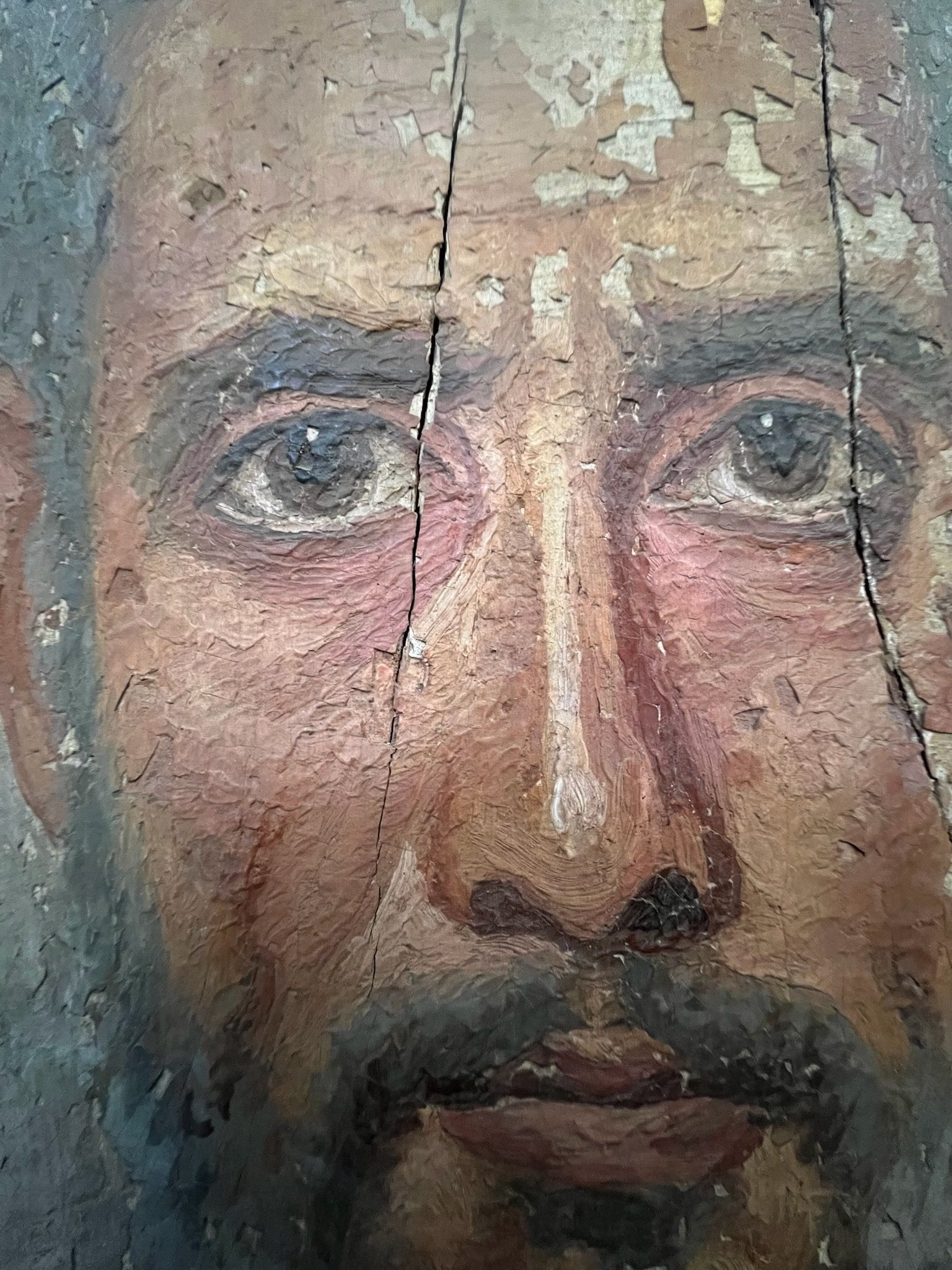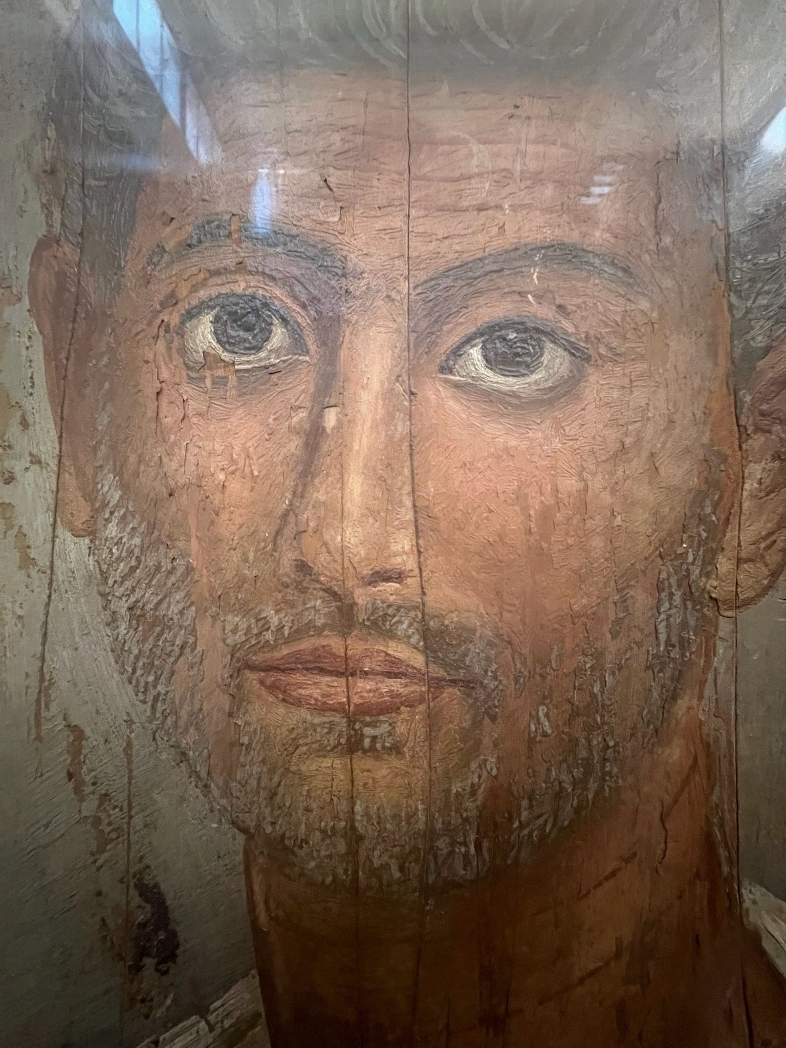 My goal for the remainder of my time in Egypt was to share with Anna some of the many things I had previously experienced on my own in Cairo – all compressed into the span of a single week. I ended up revisiting both the National Egyptian Museum and the National Museum of Egyptian Civilization. This turned out to be wonderful, as I discovered beautiful things I previously had overlooked. I was particularly pleased to discover a good number of the famous Fayoum portraits in one of the Egyptian Museum’s many, many rooms – well-preserved realistic paintings that covered the face of mummified people who died during the Greco-Roman period.