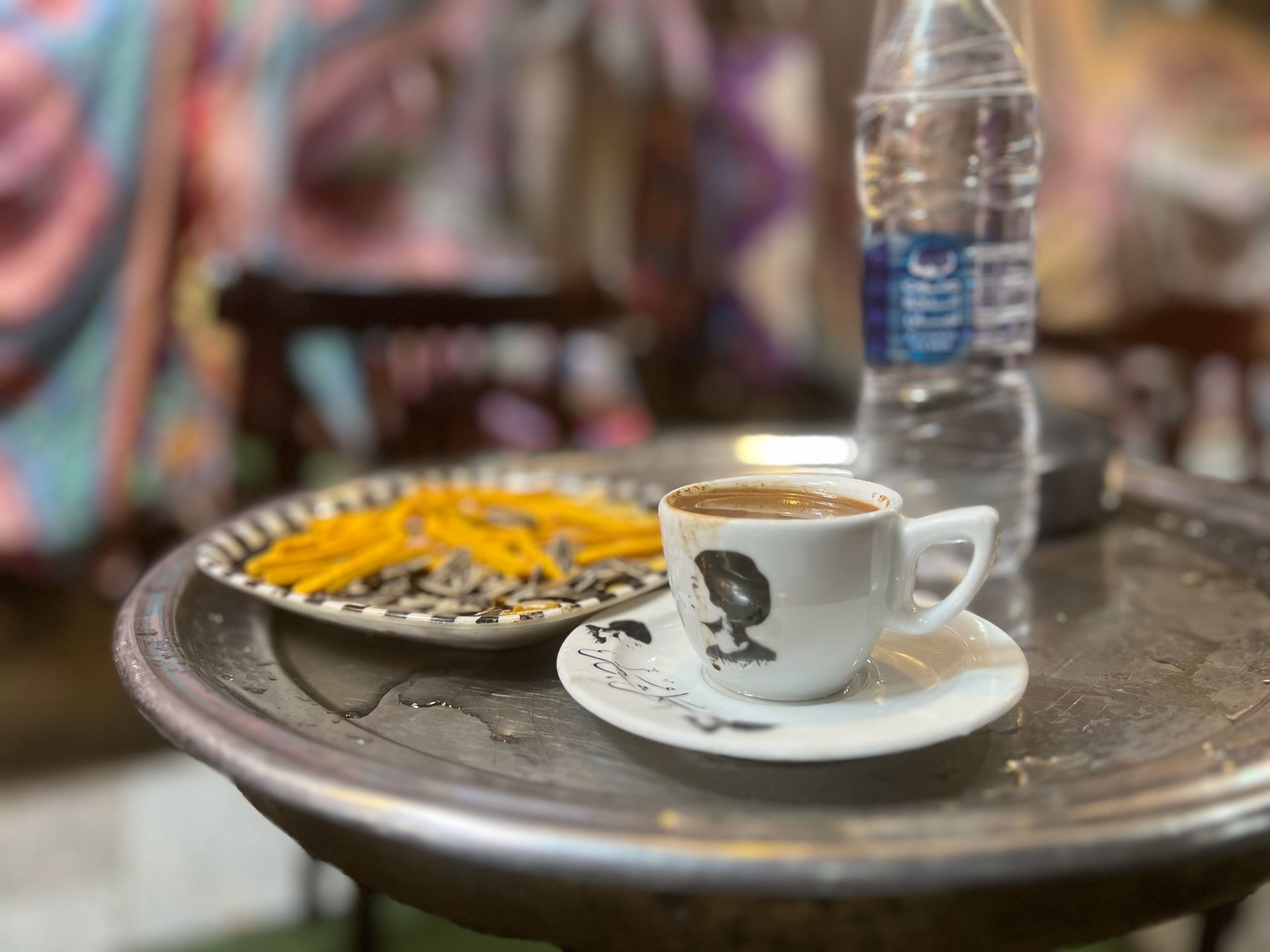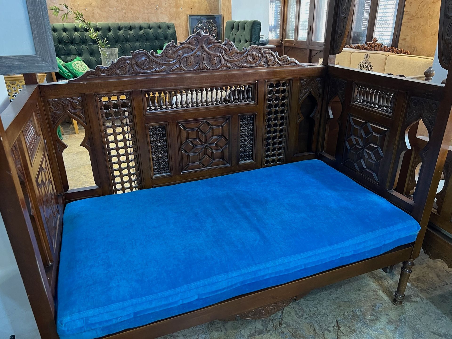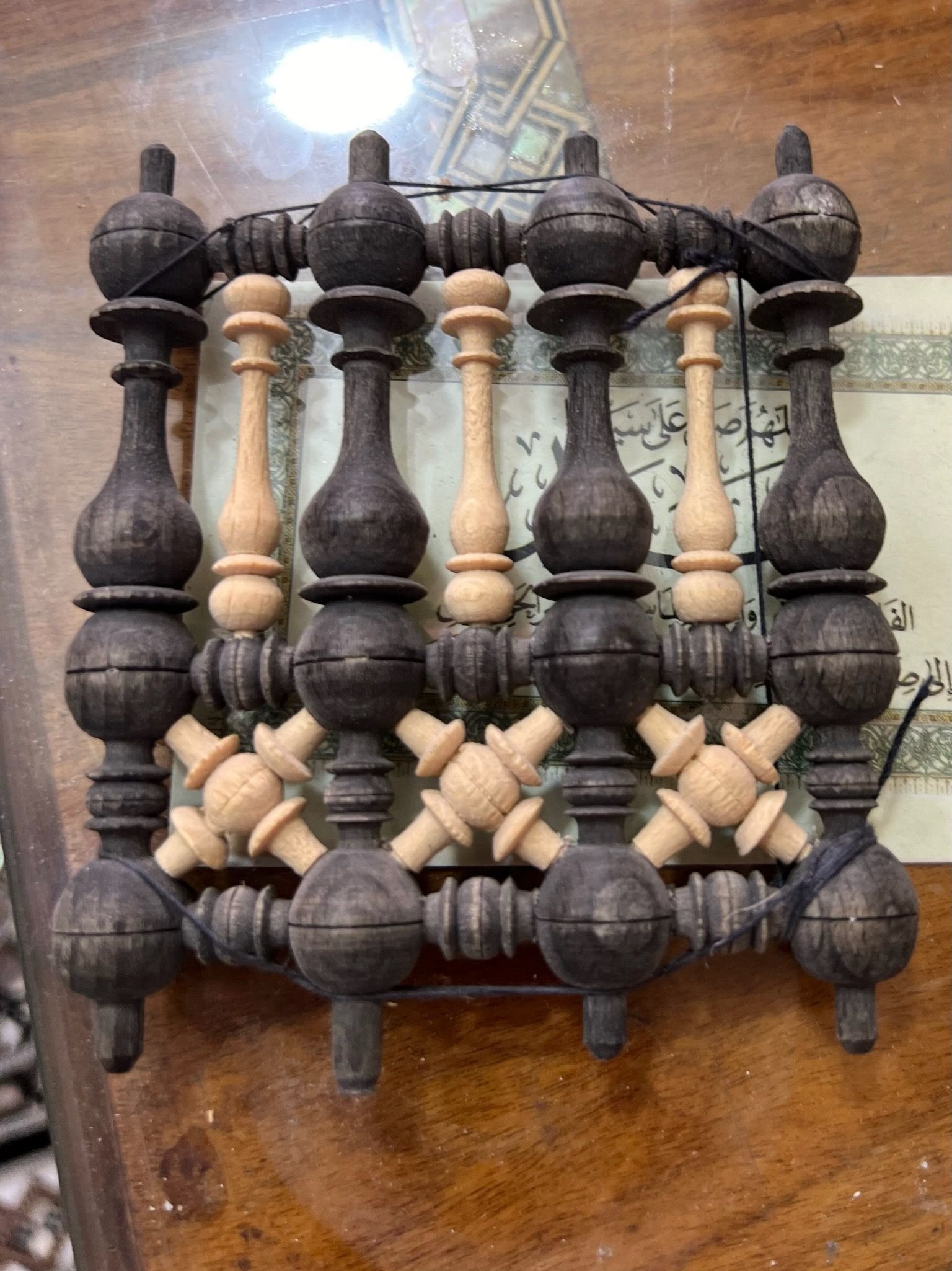 Looking at things, bargaining, marveling at vintage phones, copper wares, and jewelry, I ended up buying a small picture frame with mashrabiyah-style border. I had fallen in love with the intricate craft of wood-turned furniture and window covers, but most pieces are way to big for to take home on the plane. This little, partially broken, piece will have to do. As Anna hopes to visit the market, too, maybe I’ll find more things in a few weeks.