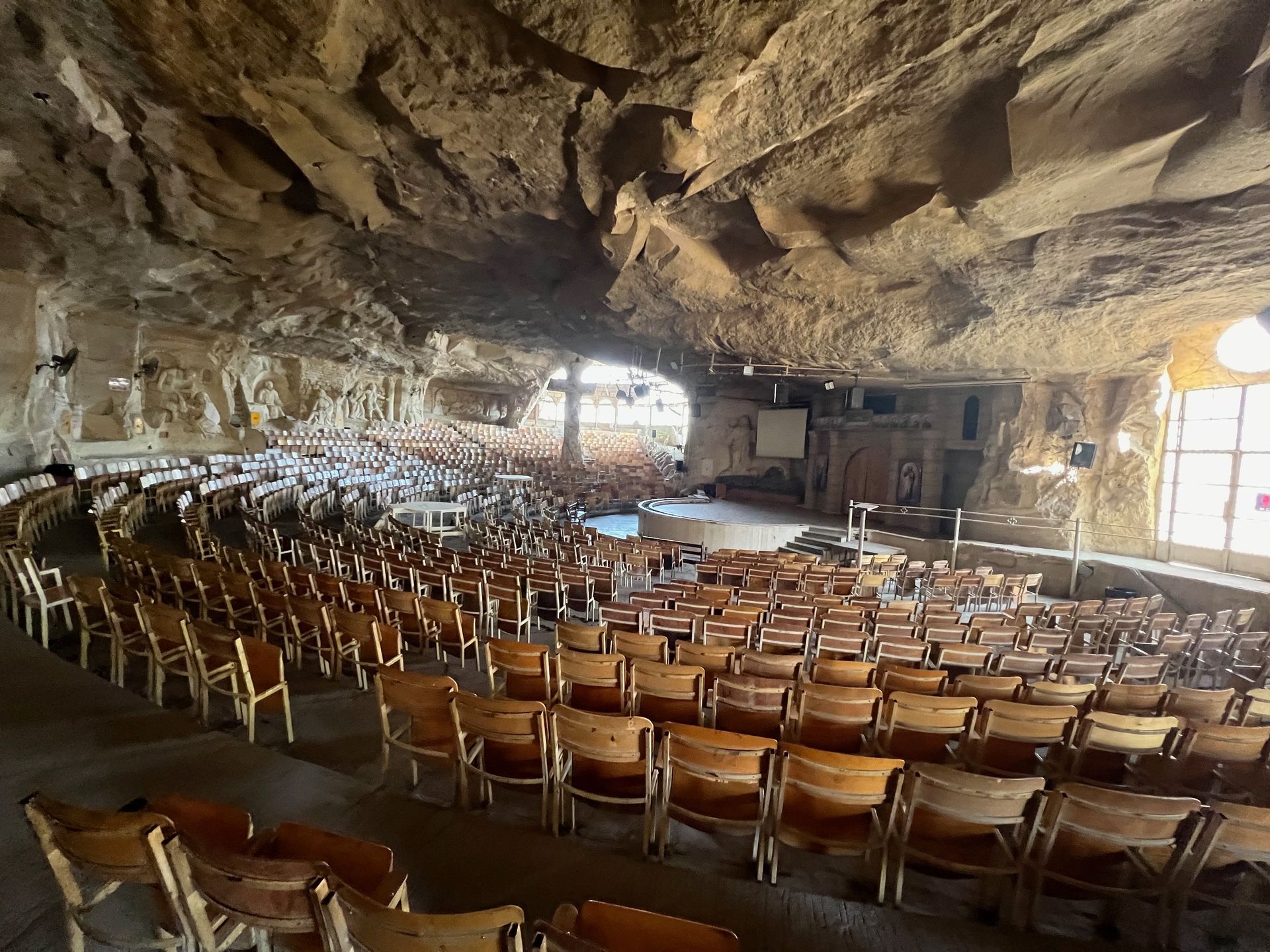 While the origins of the cave church dates back to the 10th century AD, the décor is new. A Polish artist by the name of Marius Dybich (“Mario”) who since the early 1990s has adorned the rock face with sculptures that feature scenes from the New Testament and the legend of Saint Simon.