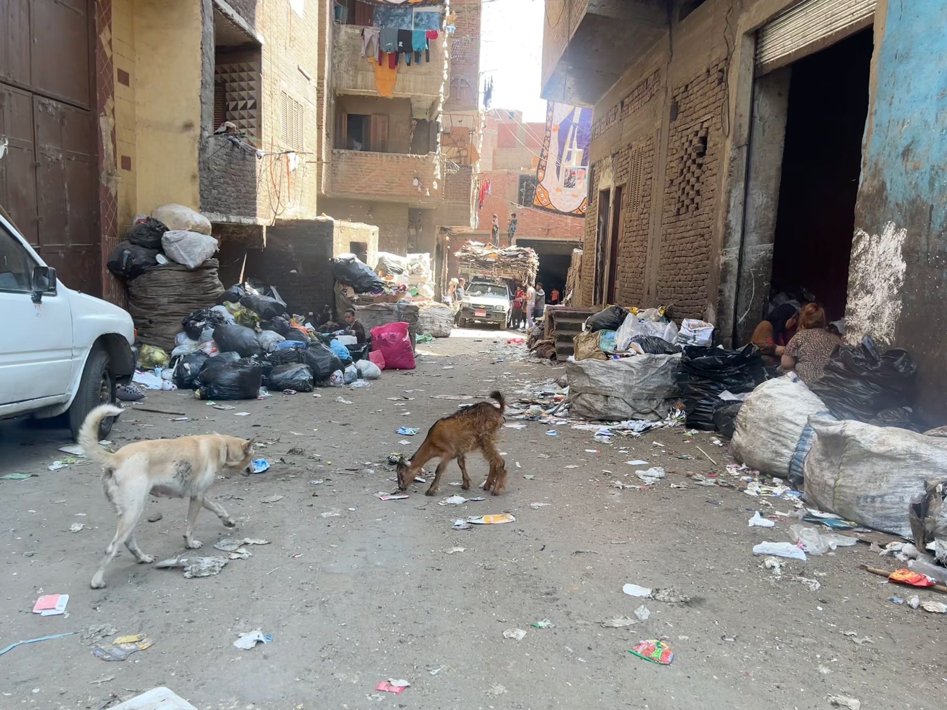 Manshiyat Naser (nicknamed “Garbage City “) is a neighborhood in Cairo’s Mukkatam Hills where the residents make a living from collecting and recycling Cairo’s refuse. It was created by the descendants of farmers who migrated to Cairo in the 1940s AD from Upper Egypt t in search of a better life. As they became city dwellers, they continued to raise farm animals like chickens, ducks, goats, and pigs. They started salvaging anything that had any value. The organic matters that they collected they fed their animals. Over the years, homes were built, and the community grew. More 90% of all the residents in the Zabbaleen are Coptic and Christian symbols can be seen everywhere.