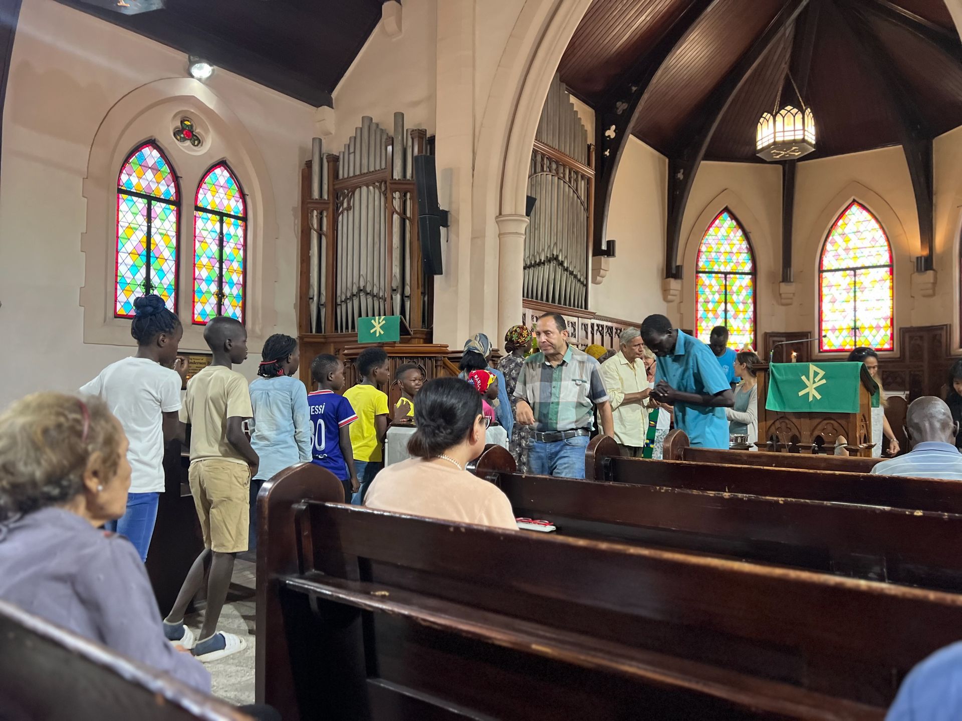 Day 6. The next day, we attended the English worship service at the Lutheran Church near John’s home. Sadly, we missed out on communion, which is not celebrated every Sunday. After worship, I got to present the motorbike, 2 helmets, the key, and the insurance and registration papers to a very happy Pr. Georges. Later that day, Pr. Prince sent me photos of the Matimba Parish church and school. The day ended with a delicious meal at a Thai restaurant.