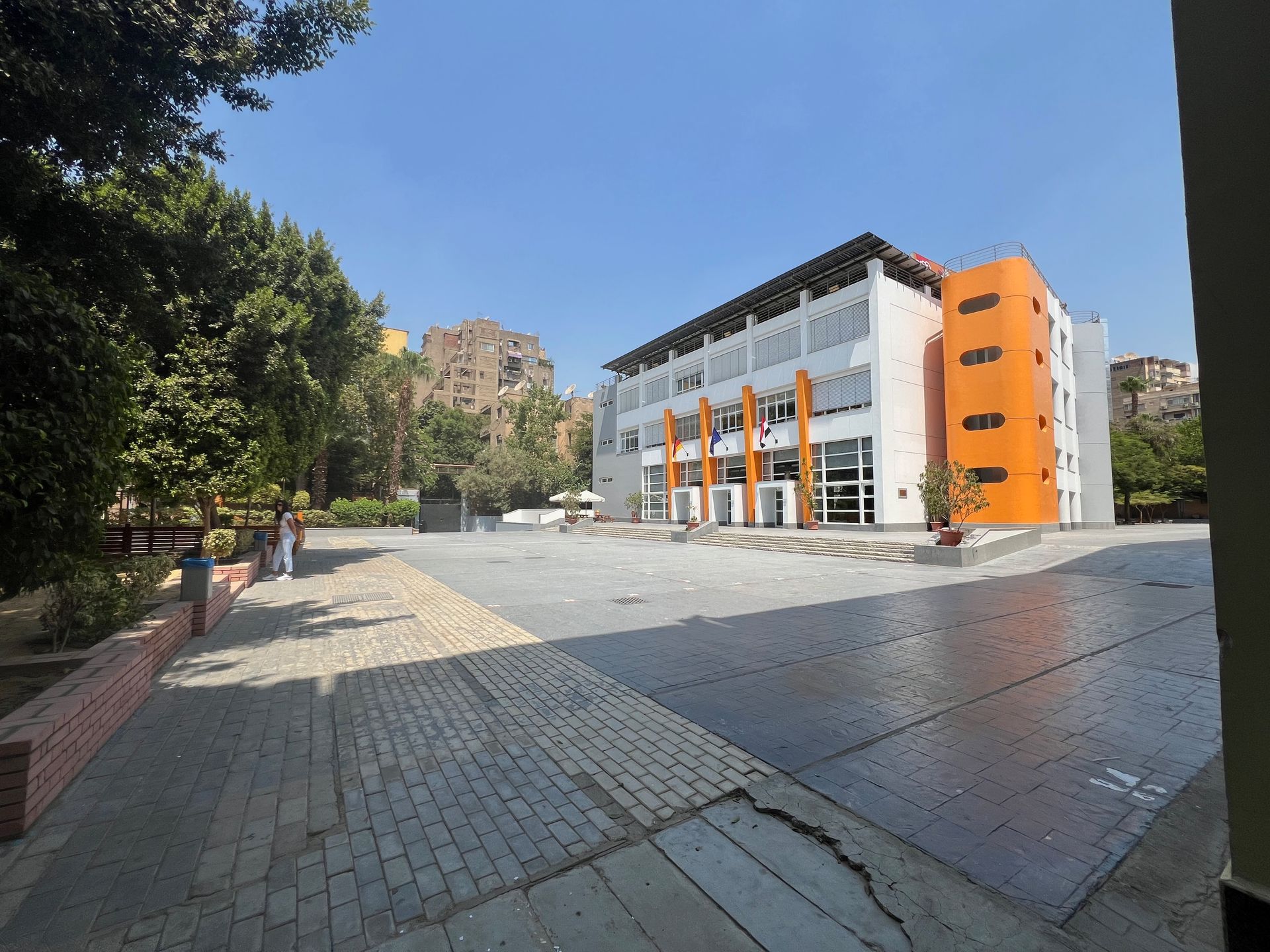 I am staying at a place called Dawson Hall, a guesthouse on the grounds of Ramses College for Girls, a Christian girls school (K-12) that is currently on its summer break. The school compound is walled-in and has a gate with security guards. The first two floors of Dawson Hall are undergoing construction and the antique elevator won’t open, but the 3rd and 4th floor have (airconditioned) apartments one can rent on a monthly basis. My apartment (no. 4) is simple, clean, and comfortable and includes a kitchen and bathroom. Onsite washing machines are provided. As the place is located in an ordinary neighborhood, grocery and other stores are in walking distance.