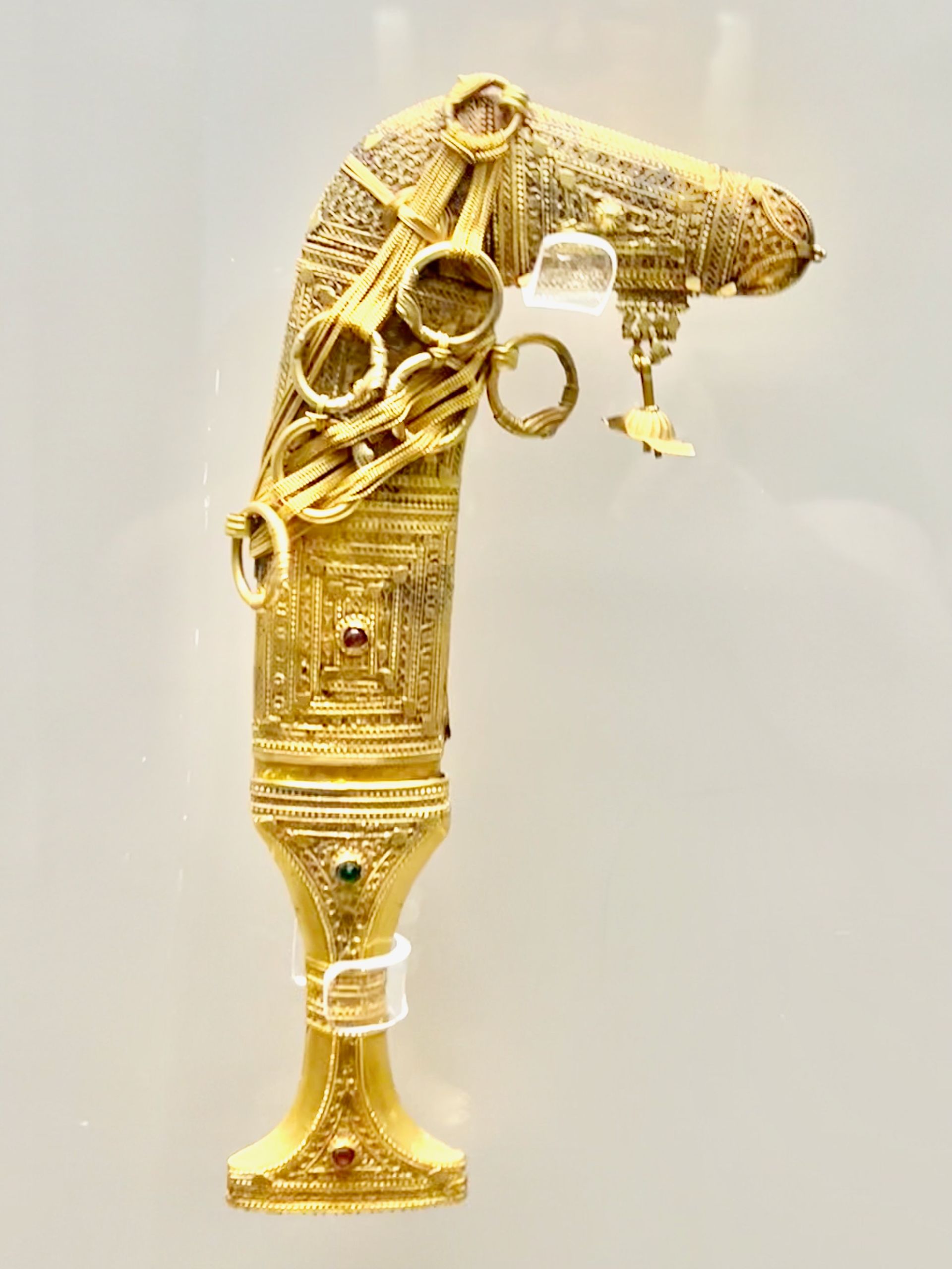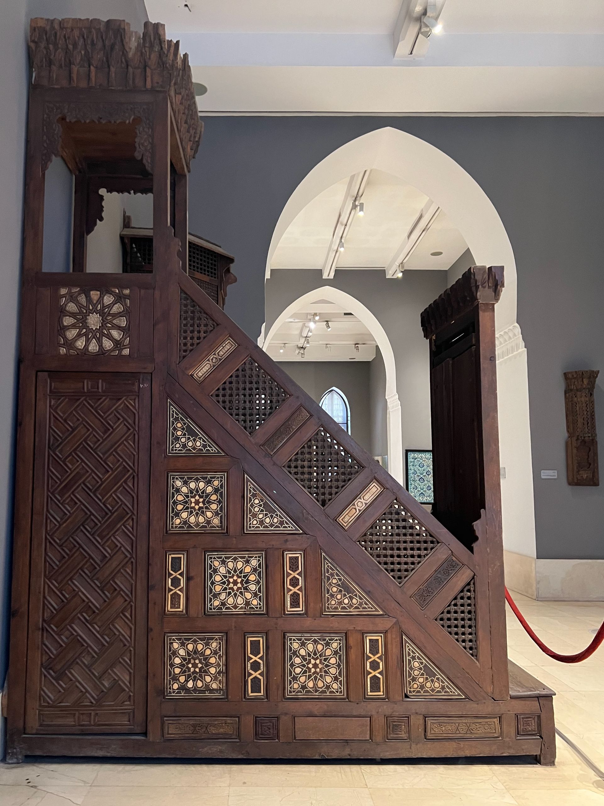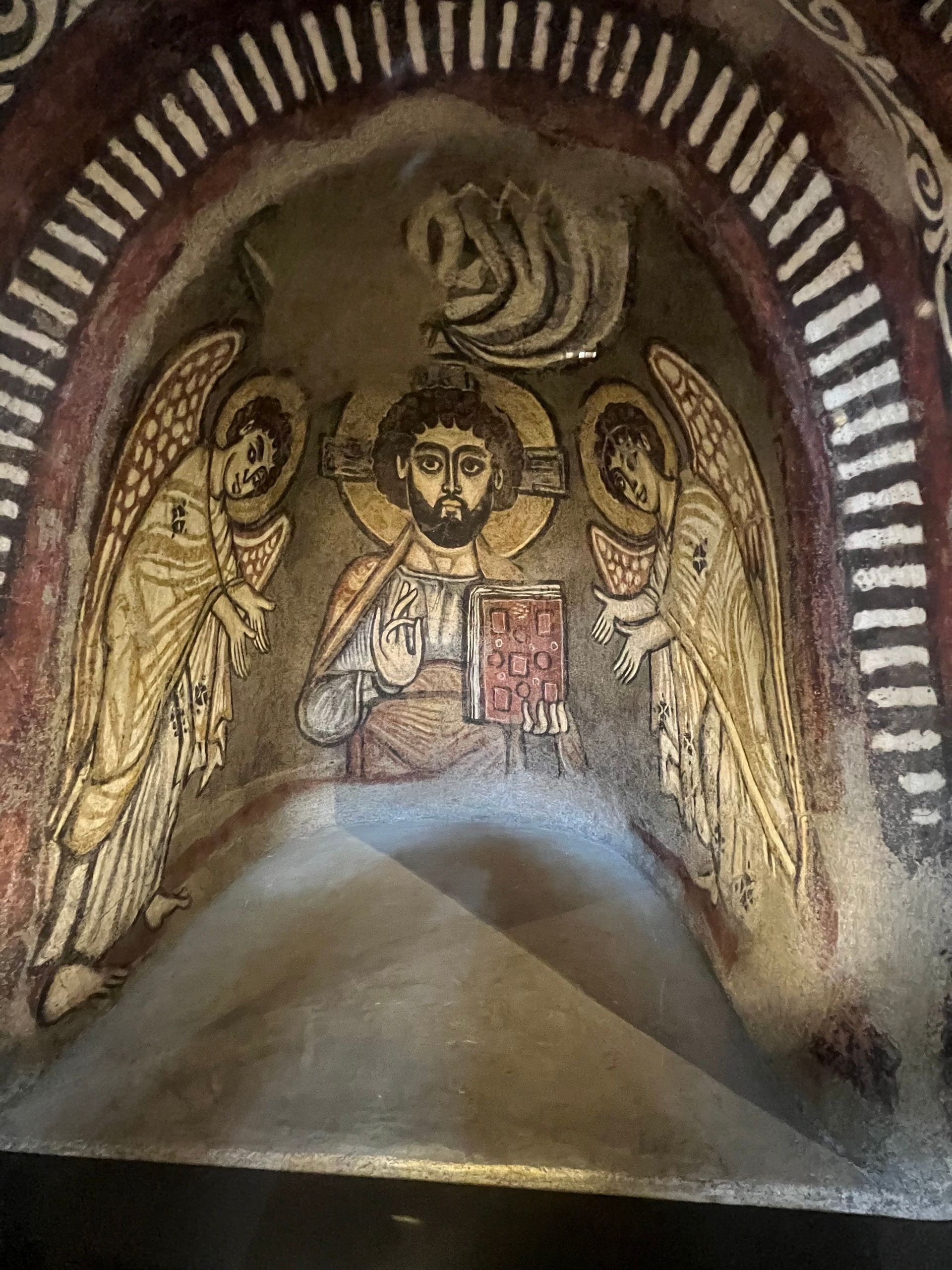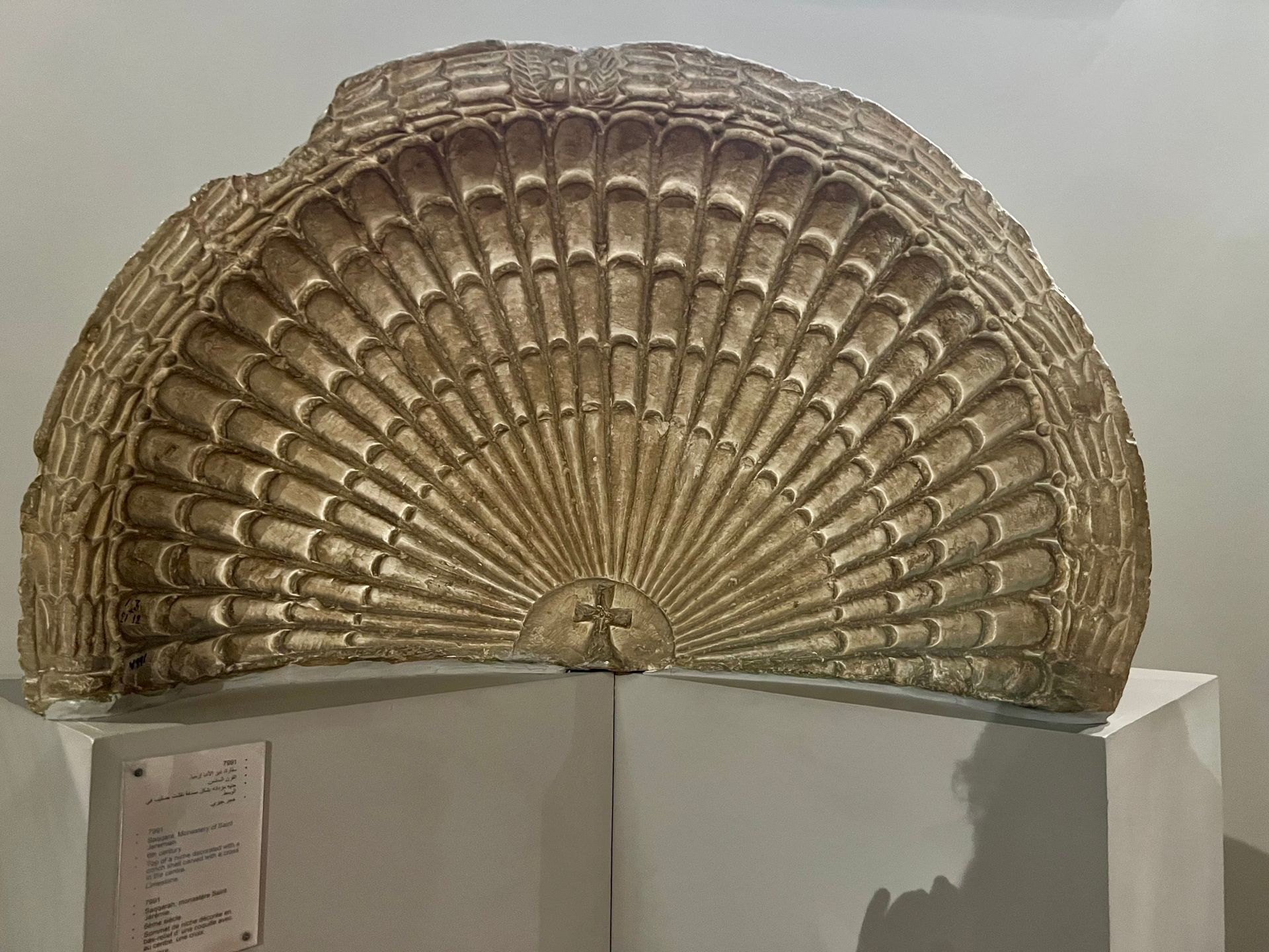 The timeframe that the museum covers includes the fourth trough the nineteenth centuries A.D. The museum succeeds in telling the story of Egypt’s gradual Christianization, with ancient ankh symbols being referenced in early-Christian designs and Greek mythology gradually morphing into Christian themes. The museum also beautifully tells the story of Egyptian monasticism in its 3 major expressions (anchoritism, semi-anchoritism, and coenobitism) and the transition from hermits to religious communities. Interestingly, “Coptic” is understood to also include the Ethiopian Church, as several Ethiopian religious items (crosses, censers, crowns, and liturgical textiles) are being displayed.