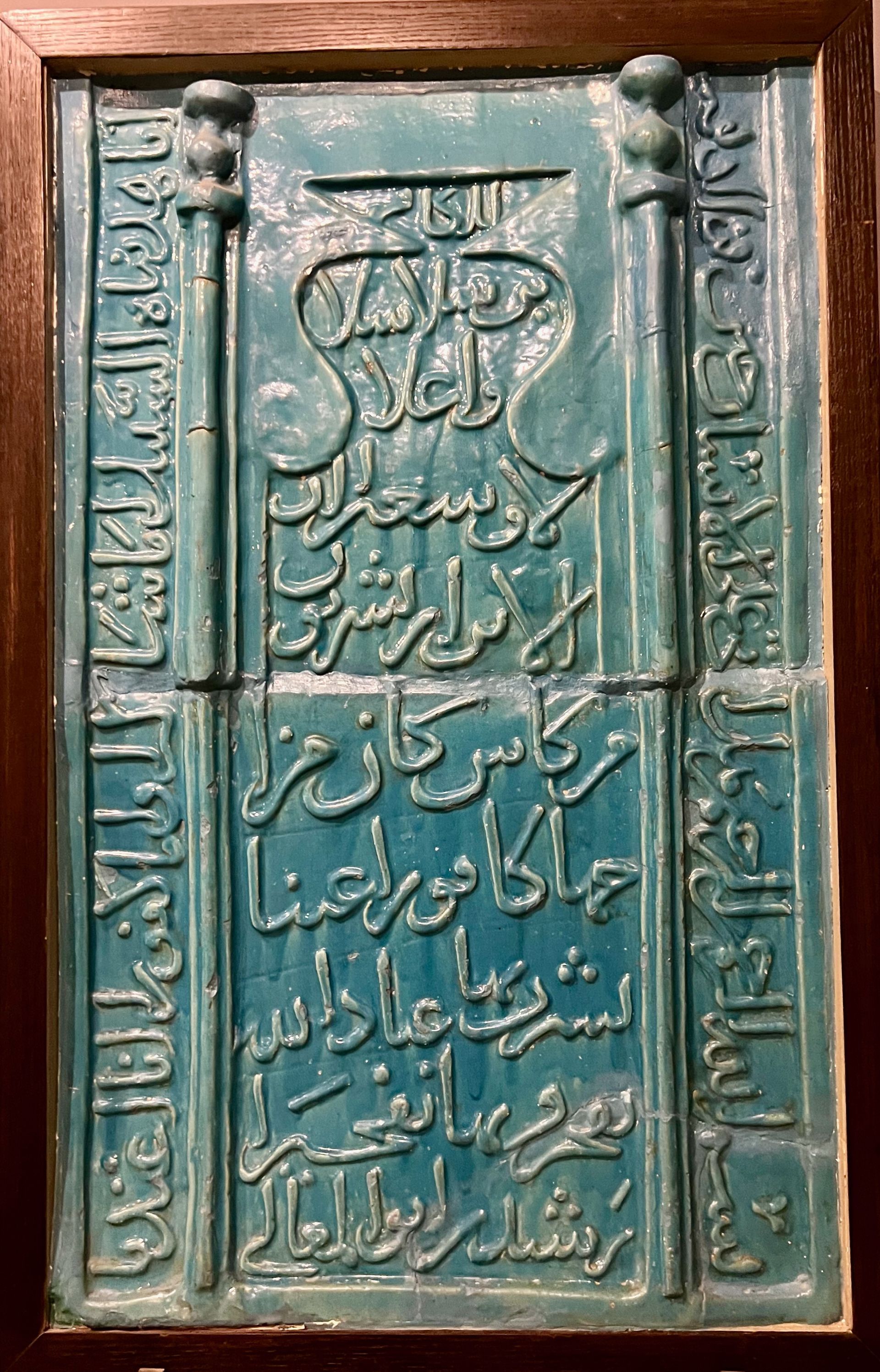 I also visited Coptic Cairo again, this time the Coptic Museum and the Al-Fustad Handicraft Souk. The museum left the historian in me a bit underwhelmed. I do not know who owns and operates the Museum, but based on the ticket design, the design of the outdoor area, and the presence of uniformed guards, I believe that it may be state-run. Founded in 1908 by Markus Simaika, a Coptic politician, it appears to presently operate under the authority of Egypt’s Supreme Council of Antiquities. The collection contains architectural fragments, textiles, religious furniture items, liturgical paraphernalia, ikons, manuscripts, pottery, ostraca, monastic frescos, metal artifacts, glass items, coins, and a lot of other stuff.