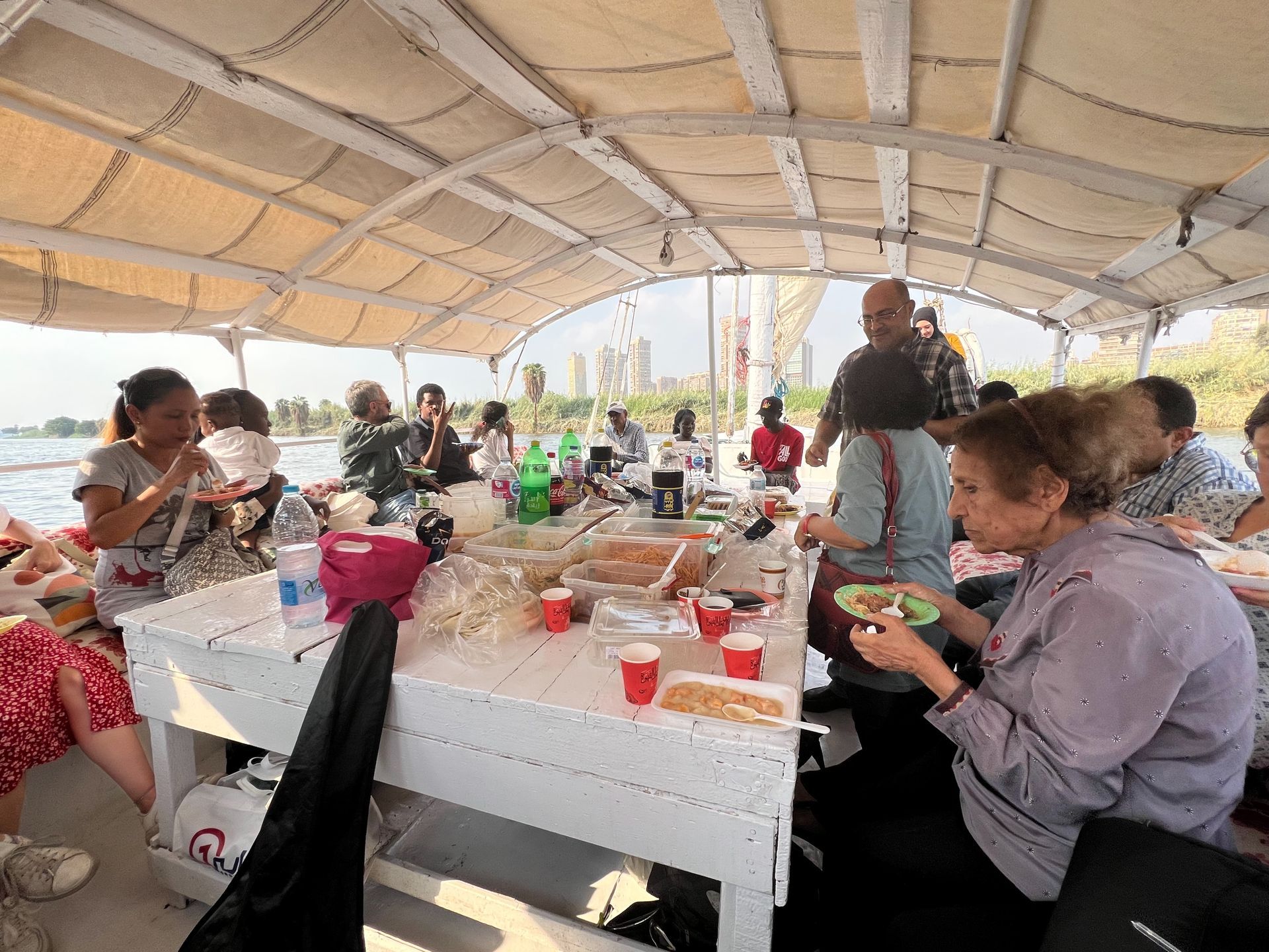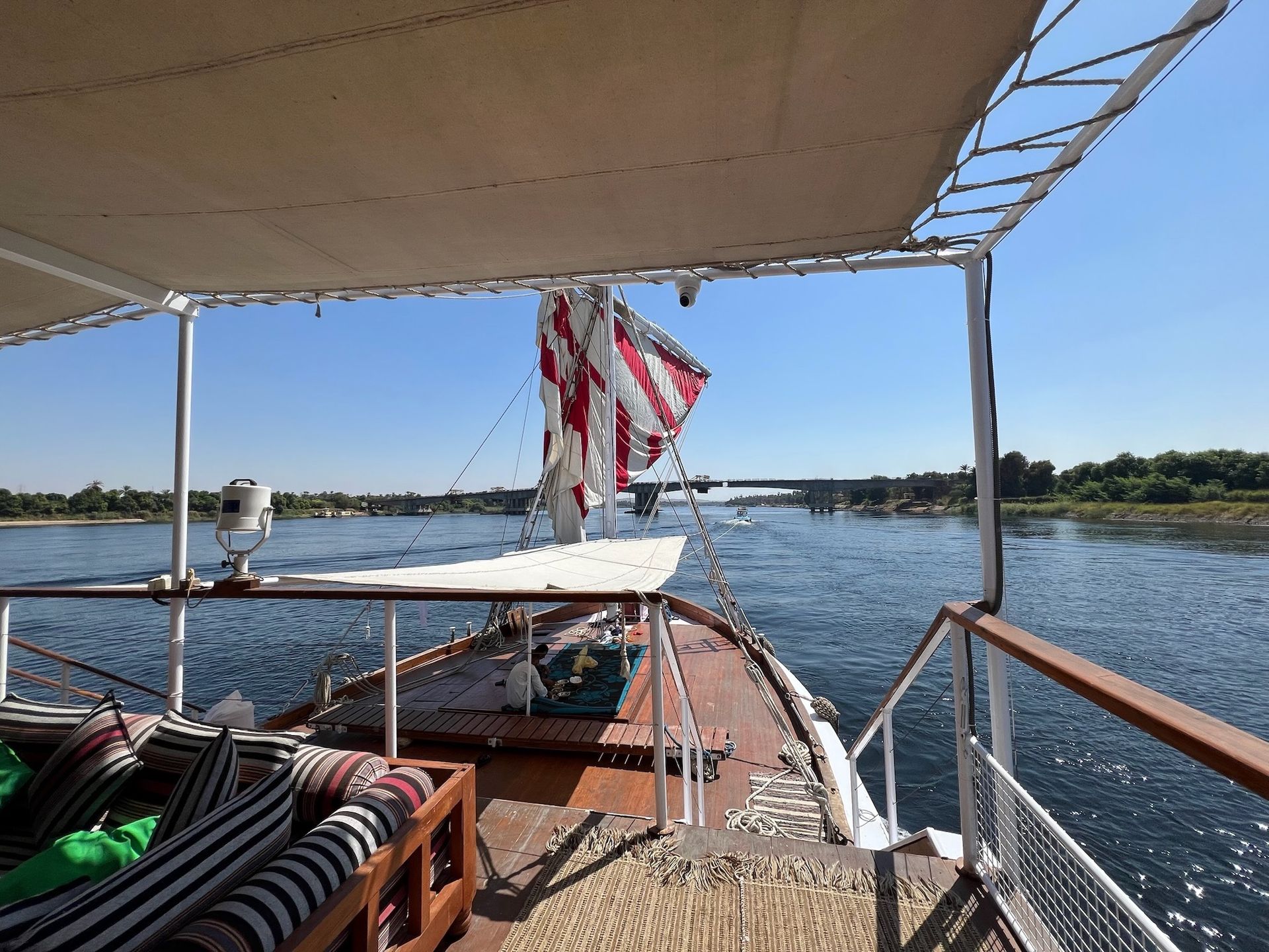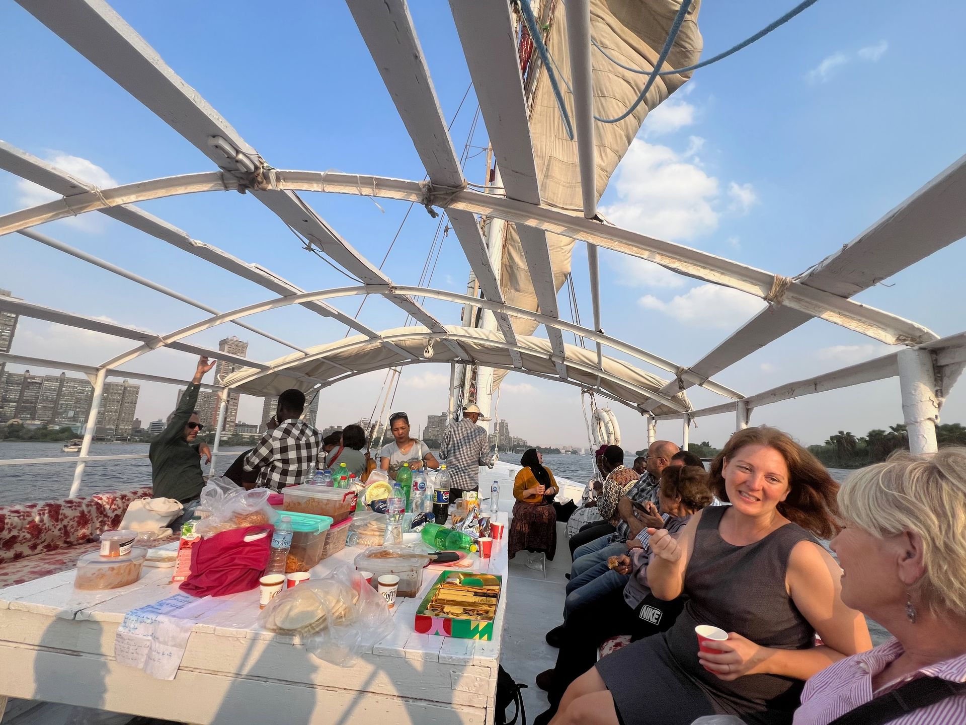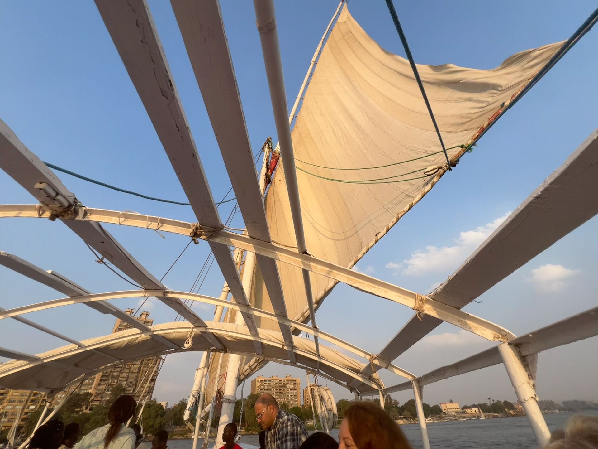 The day ended with riding a felucca (sailboat) on the Nile River. Great views onto Cairo’s downtown shoreline and some to its islands. The breeze was thoroughly enjoyable, especially after Giza’s desert heat.