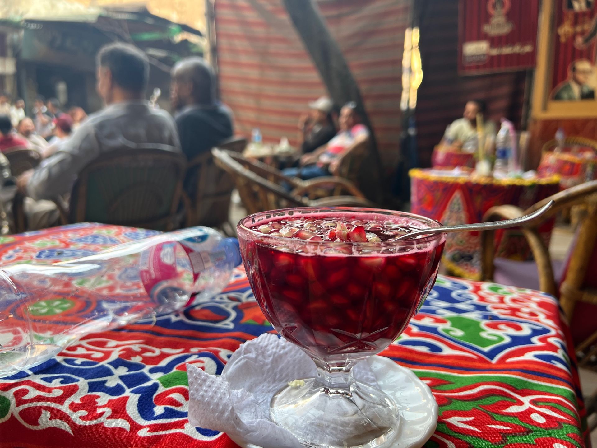 Lunch consisted of Egypt’s national dish and street food, koshary, at one of the best koshary restaurants, Koshary Abou Tarek. Koshary is a traditional Egyptian staple, mixing pasta, Egyptian fried rice, vermicelli and brown lentils, and topped with chickpeas, a garlicky tomato sauce, garlic vinegar, and crispy fried onions. Sprinklings of garlic vinegar and hot sauce are optional. Very nice!
