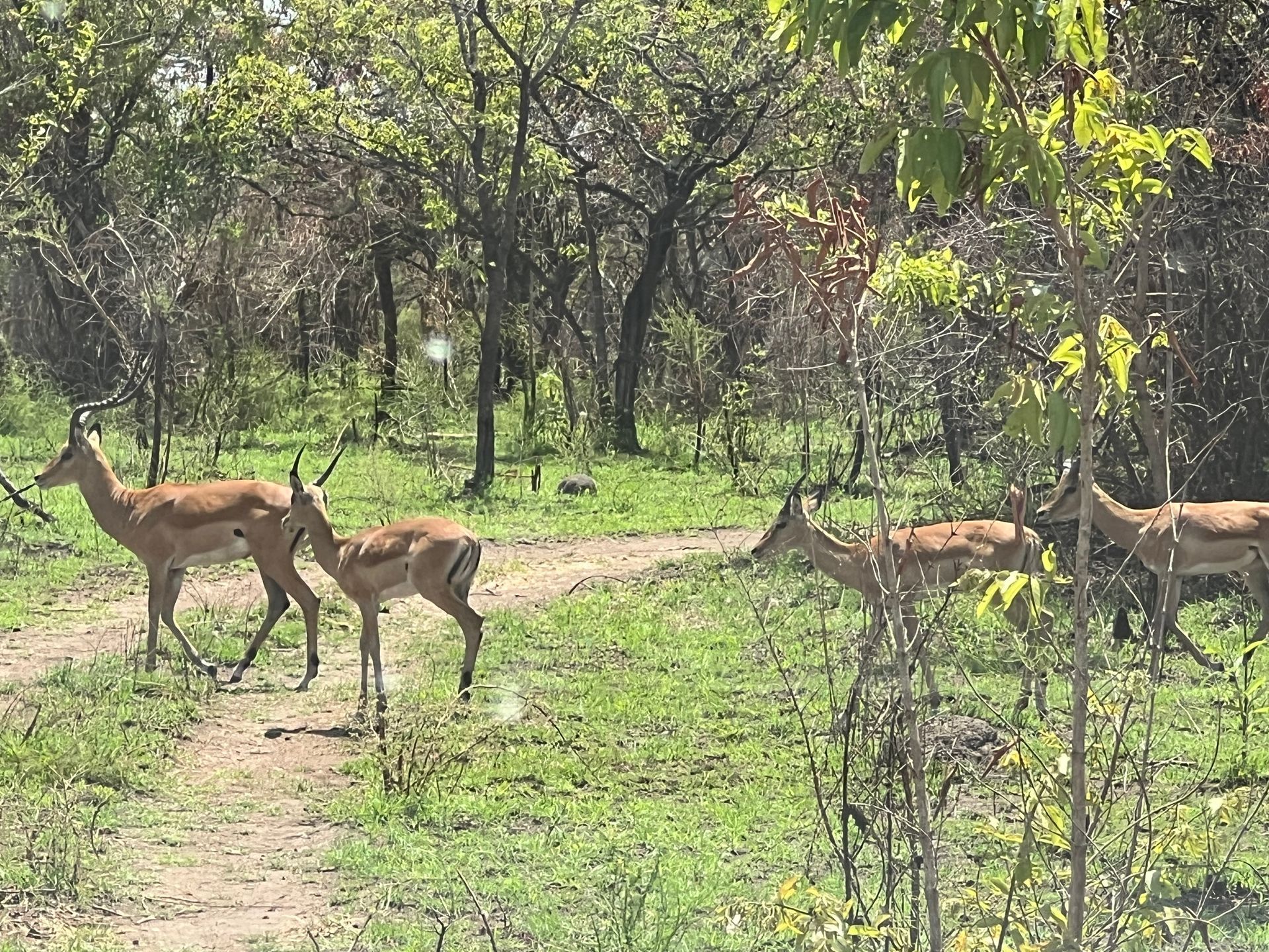 Day 3. The next day, we left John’s home at 4am in a sturdy 4-W vehicle. Our destination was Akagera National Park. We left early in the hope to see lions, which we actually did. While we did not see any elephants, we encountered hippos (in and out of the water), gibbons and some other primates, various bird species, giraffes, zebras, crocodiles, and several kinds of antelope-type animals. I have never been shaken around while riding in a vehicle as I was during our car ride in the park!