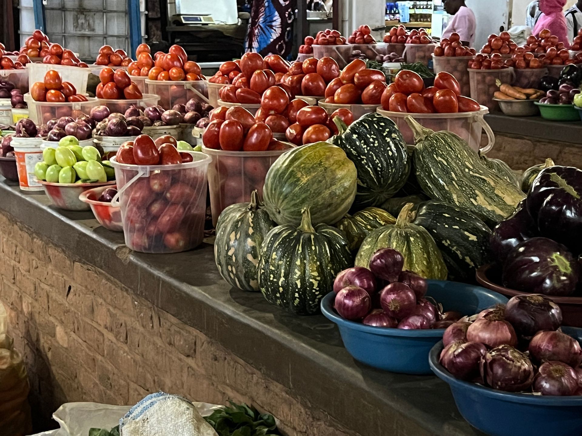 We then drove home with a few stops along the way - in Kibungo, we ate a yummy goat-stew-lunch; in Rwamagana, we drove past Rwamagana Leaders School, and outside Rwamagana, we stopped at a produce market to purchase lot of fruit.