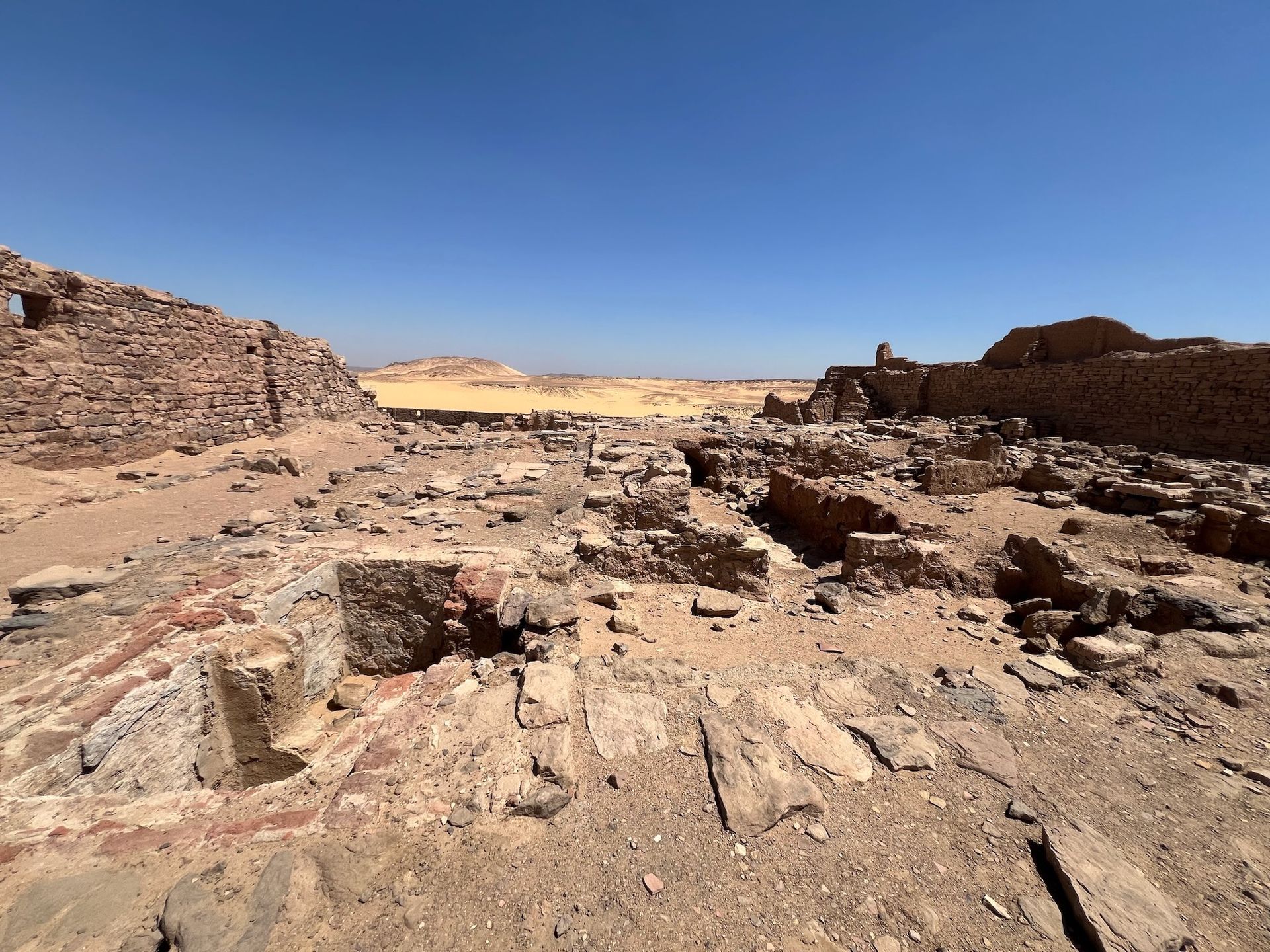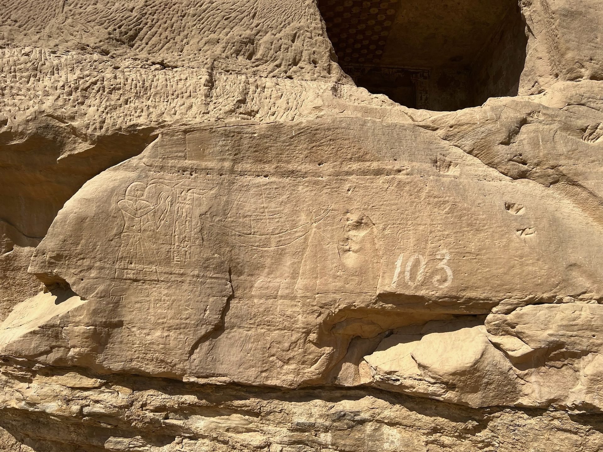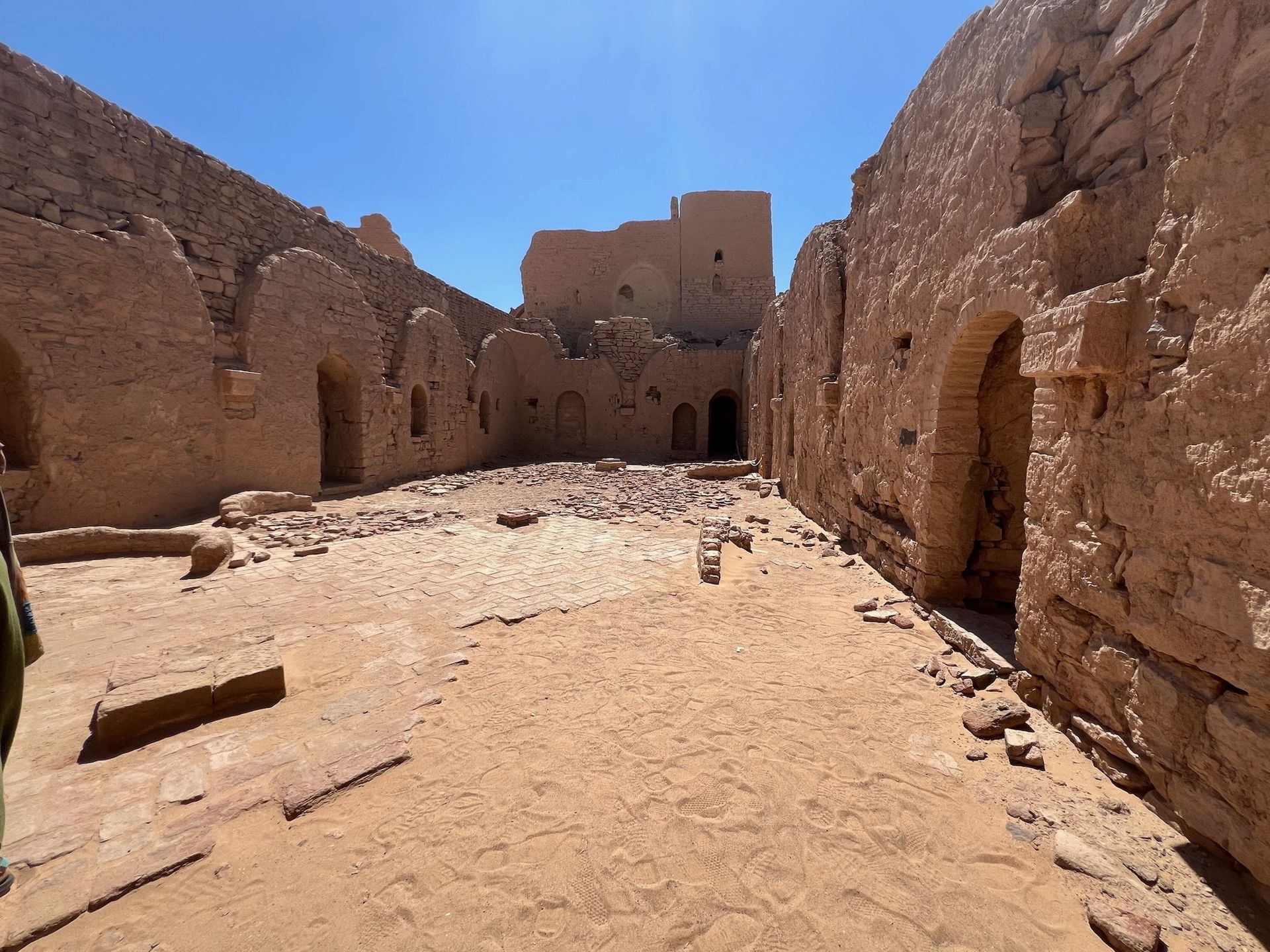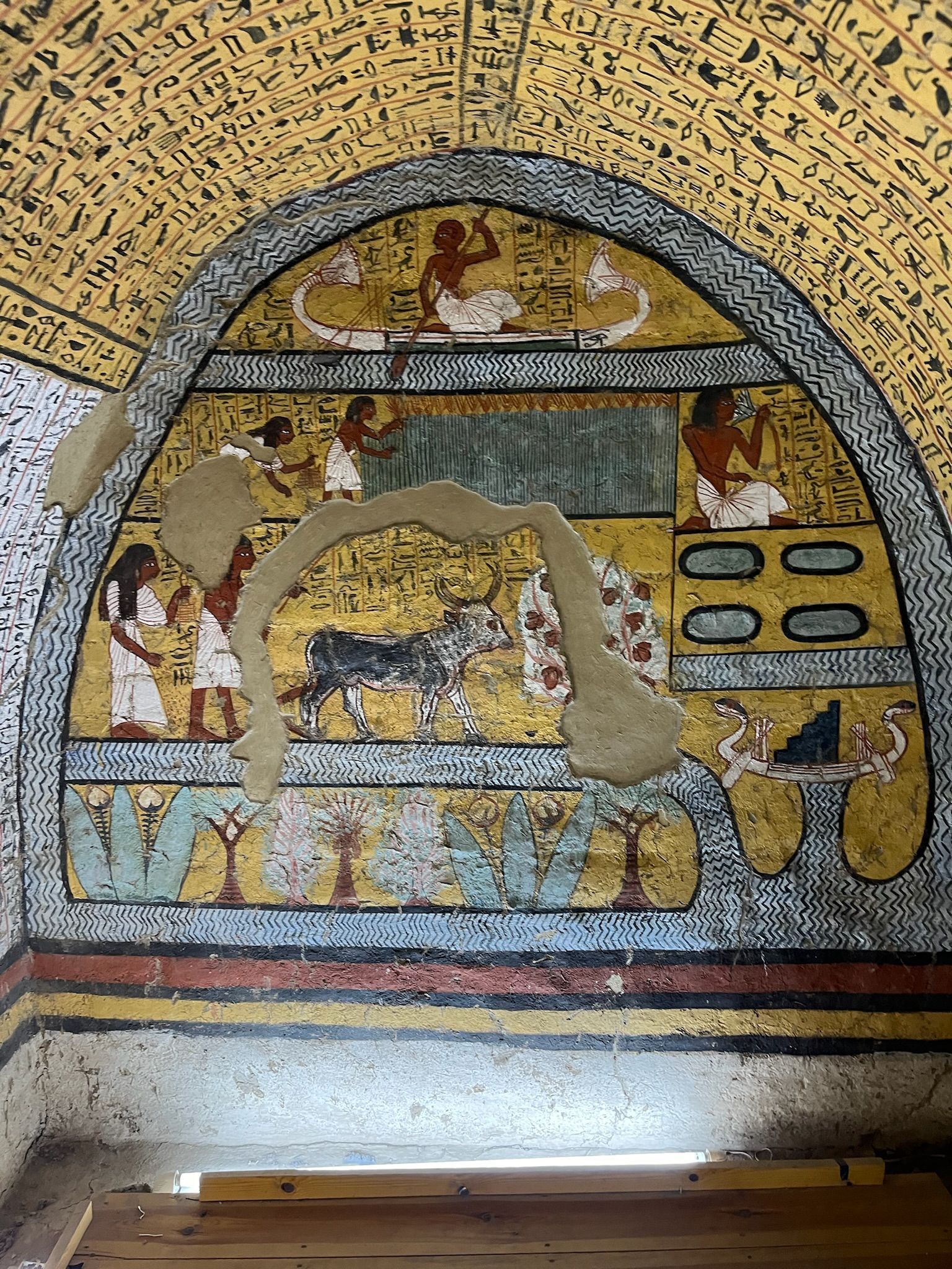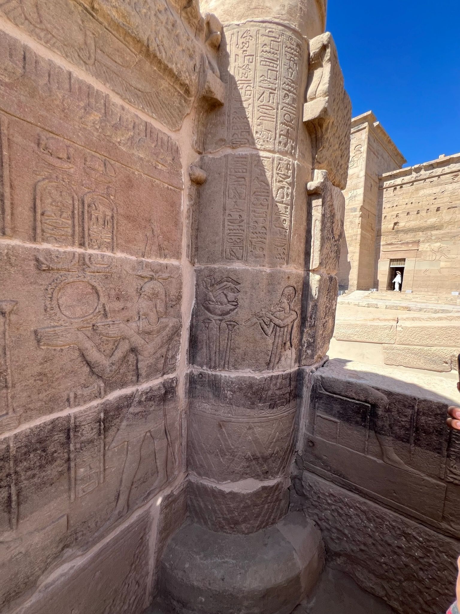 Up until now, it was relatively easy to keep track of what I saw when and where. Not so since Anna and I arrived in Upper (i.e., Southern) Egypt! The number of monuments we encountered vastly increased and their style and level of preservation changed. Instead of pyramids and their associated burial and ceremonial temples, we now saw underground tombs and multi-deity temple complexes. While in and around Cairo, I had explored mostly monuments from Egypt’s “Old Kingdom” (dynasties 1-6), now we saw remains from the Middle and Late Kingdoms. In Cairo, I had already encountered ancient red granite columns that got reused in Christian churches and Islamic mosques. Now, in the South, Anna and I would see temples in which Christians had chiseled out the faces of ancient Egyptian deities and mosques that we built erected right
