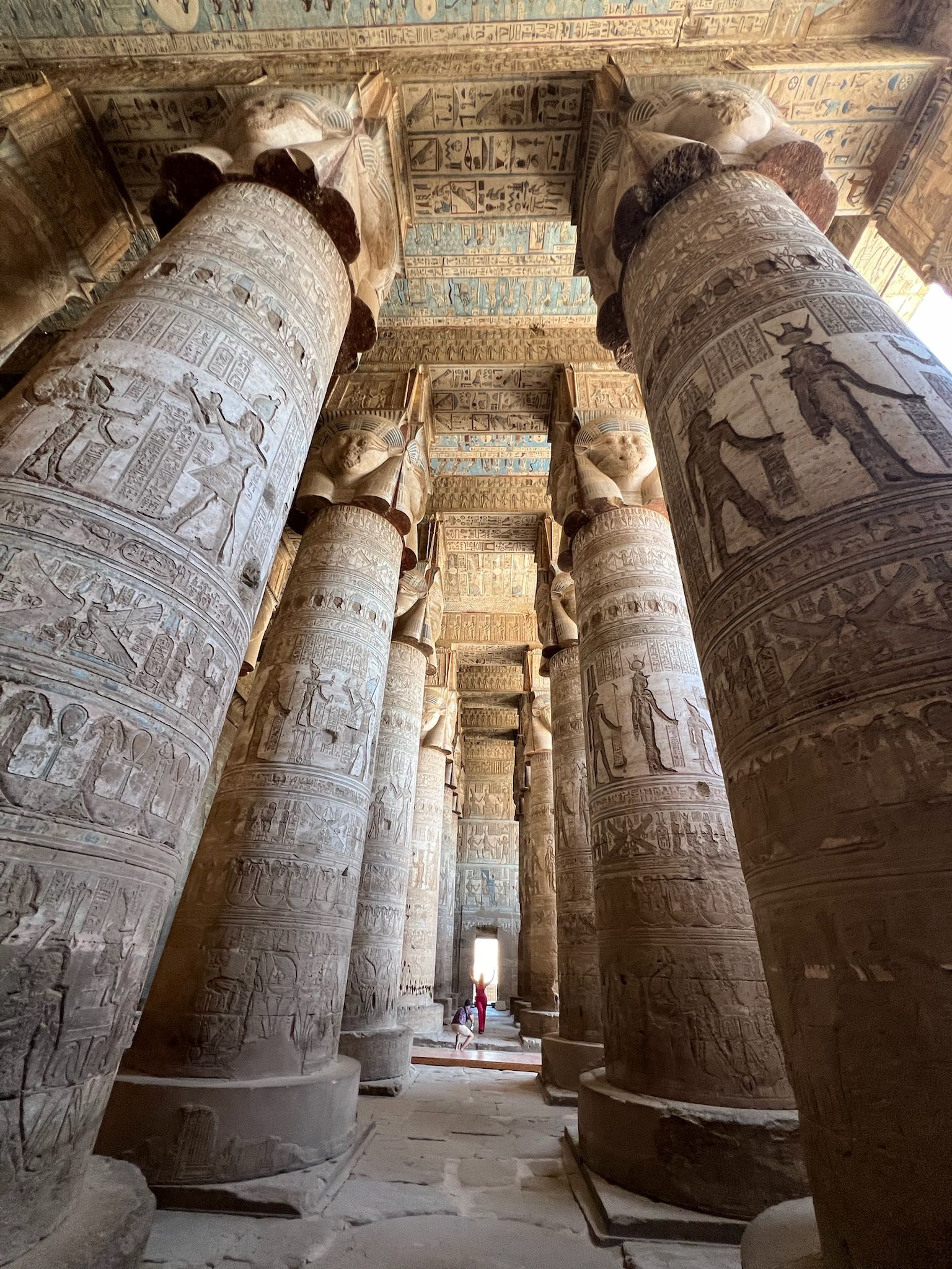 On our second day in Luxor, we drove about 2 hours north to visit one of Egypt’s most beautiful temples, Dendara Temple in Qena. Upon returning, we visited Karnak Temple (best known for its enormous Hypostyle Hall), a restaurant, two stores selling essential oils and papyrus art, and – at the end of the day - Luxor temple lit up in the dark, but visited by large crowds of tourists, some of whom were rude and insensitively dressed for this conservative culture.
