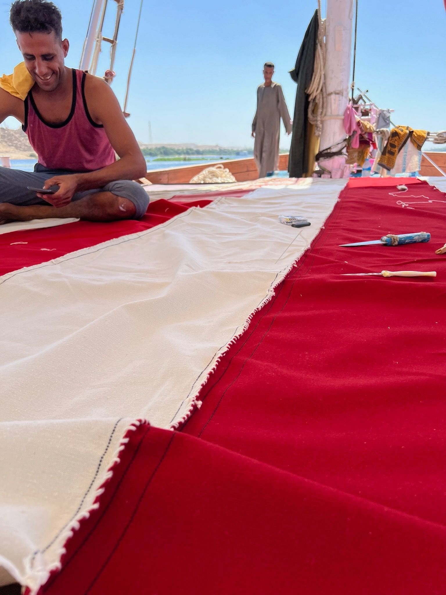 I particularly enjoyed hanging out with some of the Egyptian crew members. I got to see how they were sewing a new sail for a small excursion boat over the course of one day and I even got a personal cooking lesson in the boat’s small, but well-equipped kitchen.