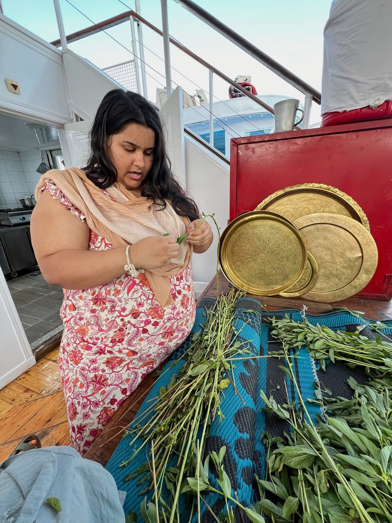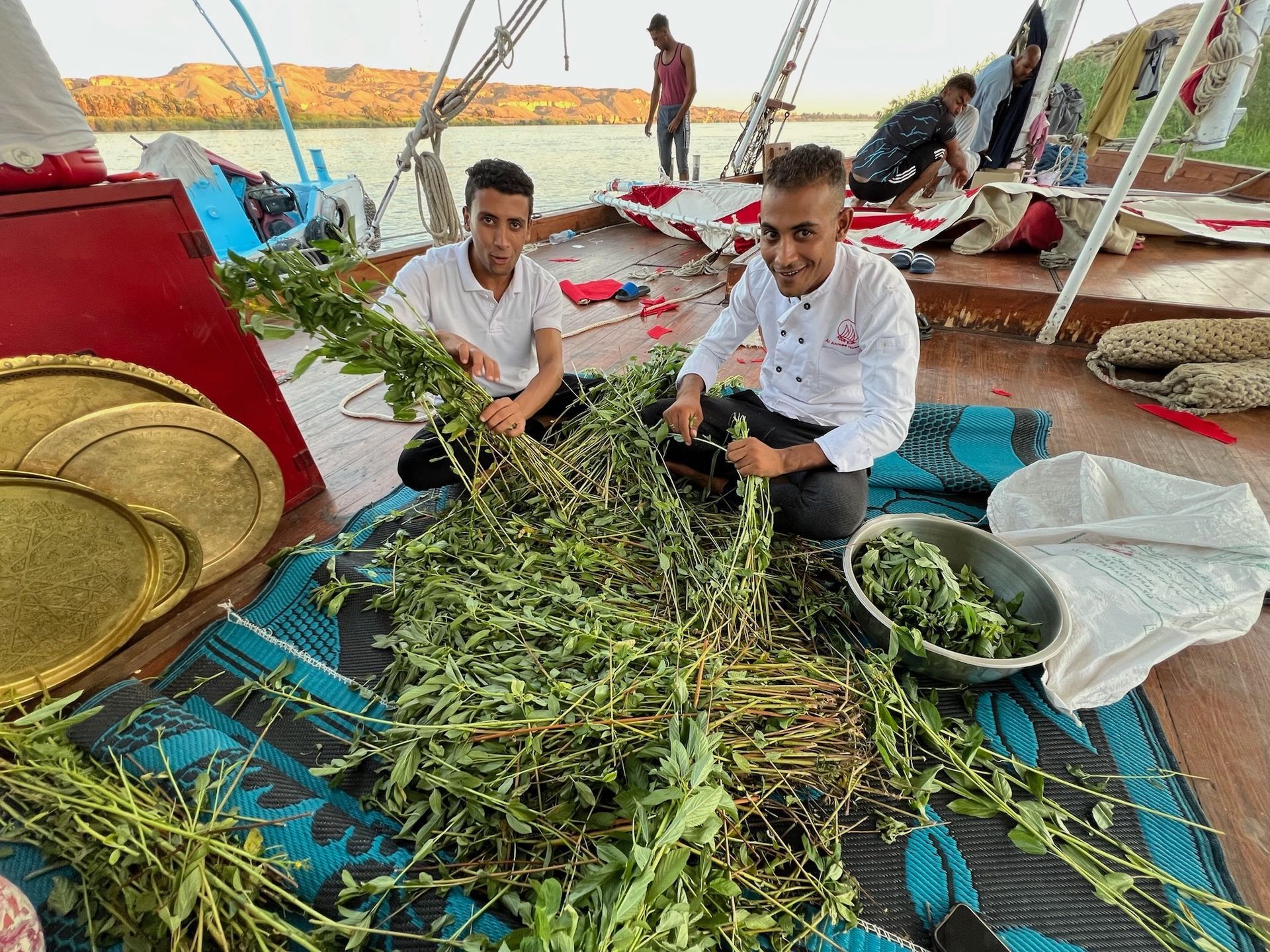 One day, I got to assist the chef on board as he prepared molokhia (jute mallow soup) -- just for me. I might have been the first person to ask for the soup and to ask to learn from the check. This, together with conversations with the dahabiya staff are among my treasured memories.