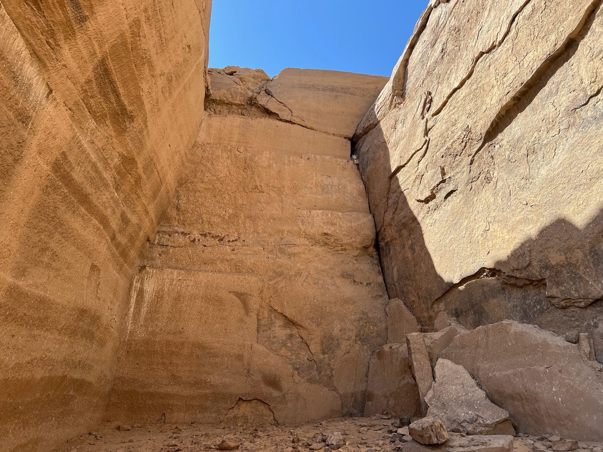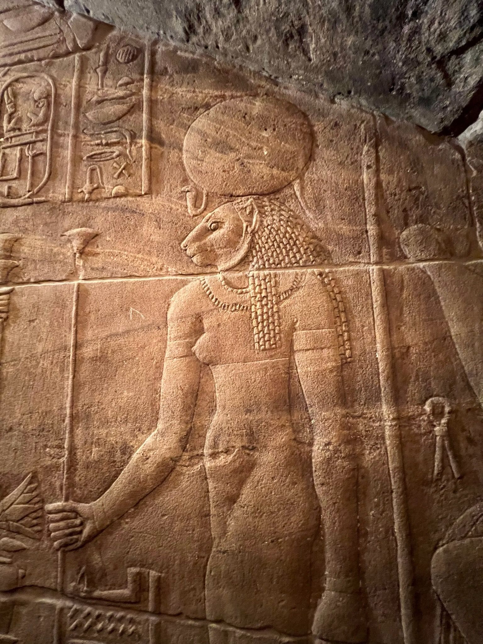 By the time of the new kingdom (eighteenth dynasty), all royal tombs were carefully concealed from the greedy eyes of ancient grave robbers. For example, those who wished to offer sacrifices to deceased royalty, now had to do so not at funerary temples near the grave, but at far-away shrines. We also visited wonderful sandstone quarries and learned how the megalithic building blocks were cut out of the hillside in precisely the dimensions that the architect would specify. The quarries also served as training and testing sites for stone carvers (less talented carvers would cut boats, more talented ones carved hieroglyphs, and only the most gifted ones were entrusted with creating figural reliefs). Each person’s pay would be set according to their skill level.