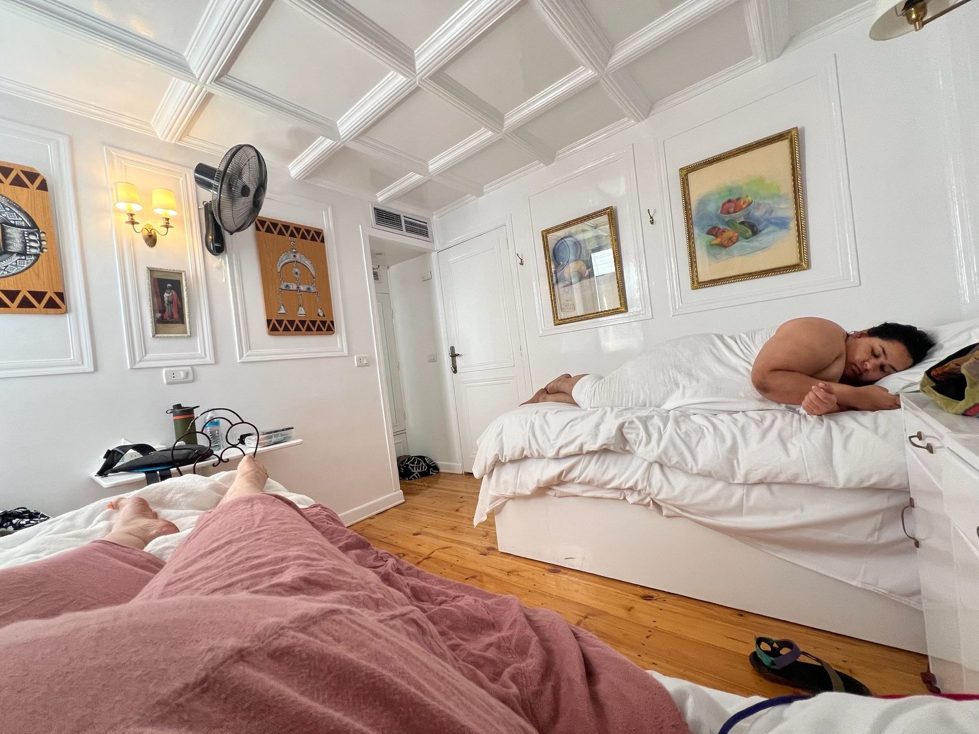 The aspect of this final week that differed most from my earlier time in Cairo was our new accommodation. After packing our stuff and bidding farewell to Dawson Hall and the Ramses College for Girls, we loaded our (by now) substantial luggage into the car of a rather astounded-looking Uber driver and drove to the island of Zamalek. Zamalek feels like the rest of Cairo, given that the traffic is just as noisy and cats and dogs are as abundant as everywhere else, but at the same time, Zamalek feels completely different. Many embassies and universities call it their home and numerous expats and affluent Cairenes live here. A web of businesses has arisen that caters to them – restaurants, grocery stores, language schools, financial institutions, luxury hotels, cafes, ice cream parlors, bakeries, gift shops, art galleries, antique shops, jewelry stores, and clothing stores.