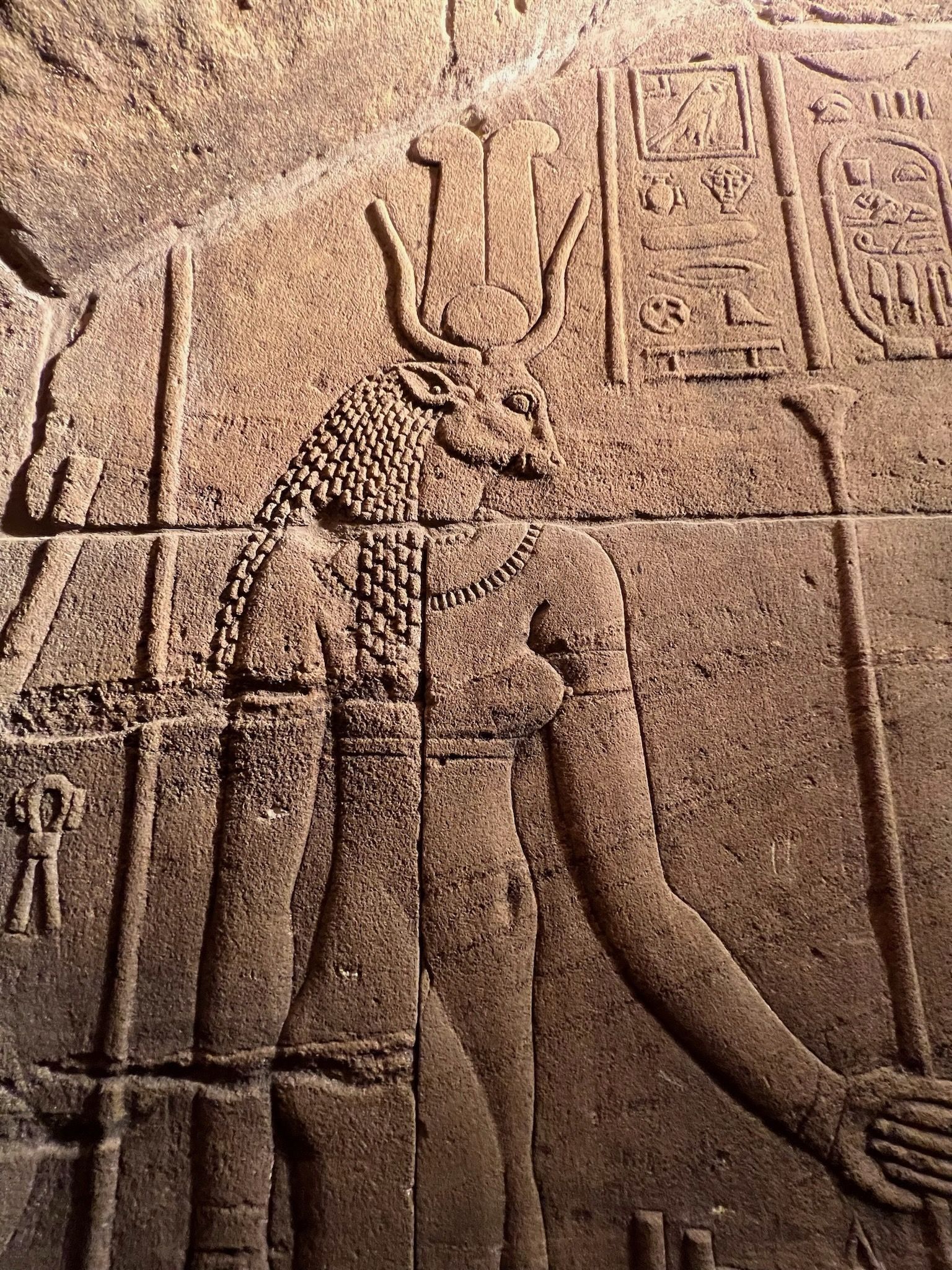 Each day, the boat would stop for a few well-chosen activities - the temples of Esna, Edfu, and Kom Ombo (including its crocodile museum), the shrines and sand stone quarries of Gebel Silsiah, swimming in the Nile, a visit to a local village home, a walk in the desert, etc. Instead of petting cats and dogs, Anna now got to pet cows and donkeys. As the South of Egypt is markedly hotter than the North, I was glad that the sites we visited were just a short walk (or drive) away and that they were smaller than the vast temple compounds in and around Luxor. The sites were carefully chosen and with the help of our super-knowledgeable guide Adel, they helped us fill gaps between things we had already seen and make sense of ancient religious practices as they evolved over time in ancient Egypt.